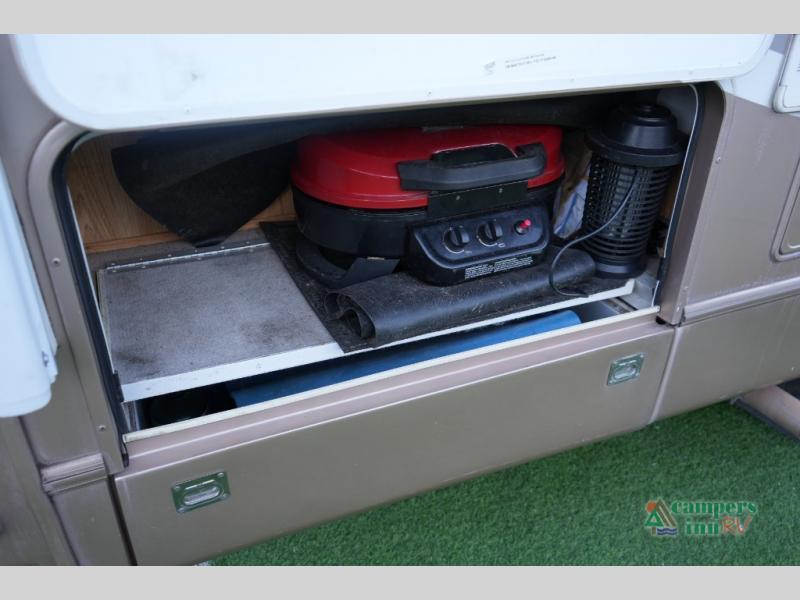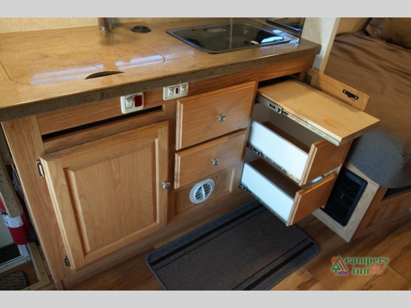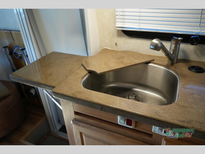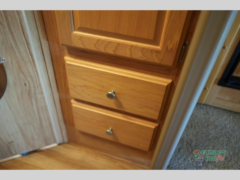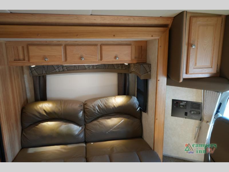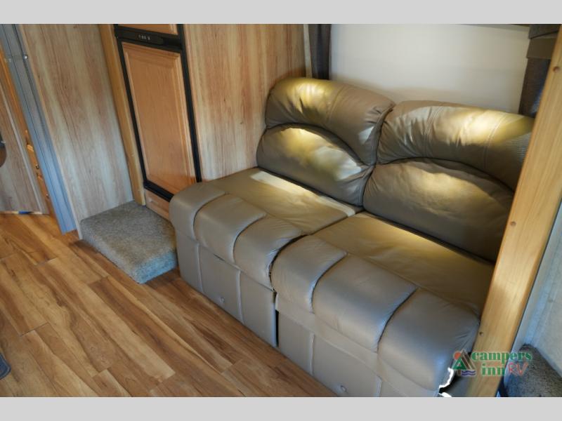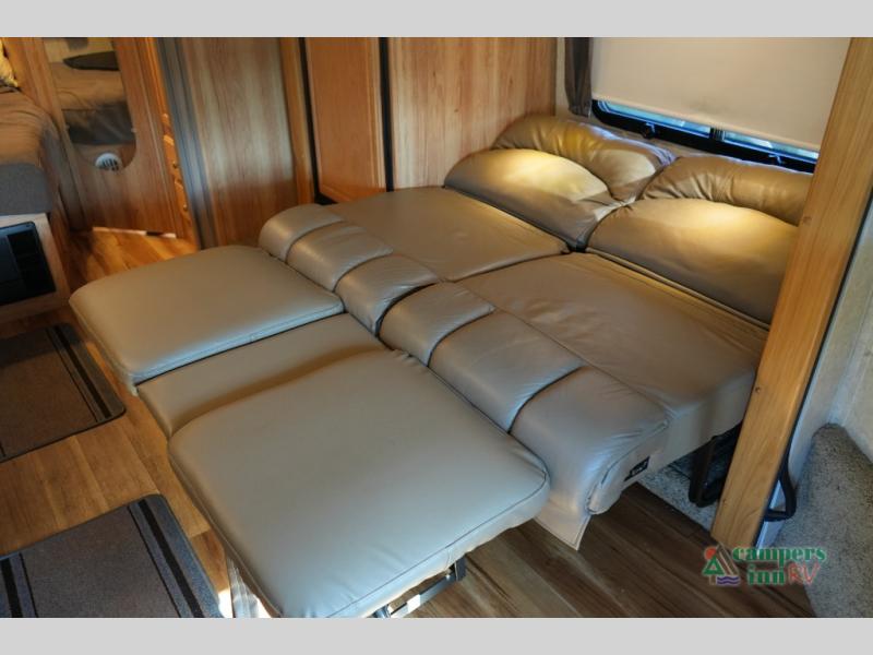 The inviting front lounge area provides a comfortable sofa that quickly converts into an extra sleeping space, ideal for kids or overnight guests.