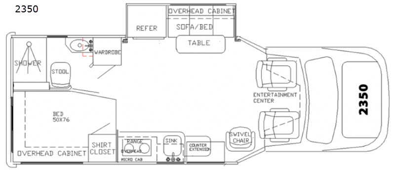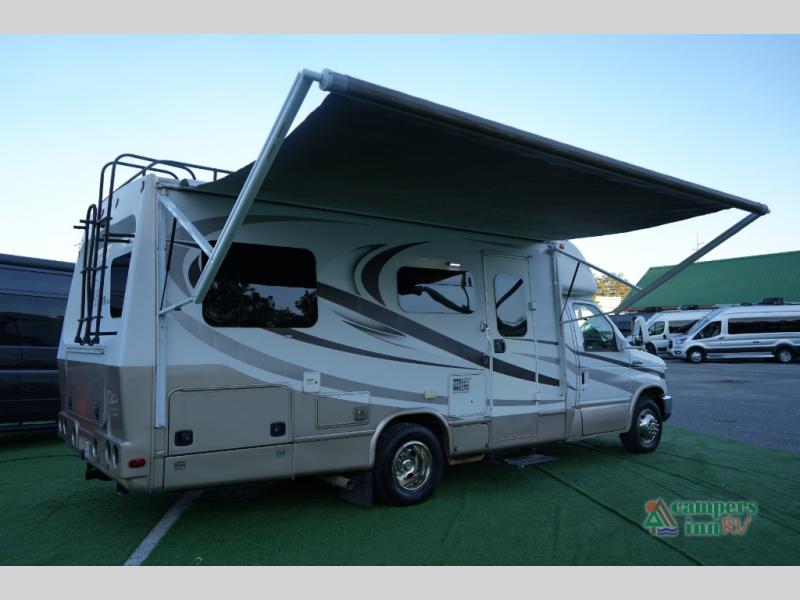The Phoenix Cruiser 2350 is engineered for comfort and performance. Choose between a powerful Ford gas chassis or a smooth, efficient Mercedes Sprinter diesel chassis. Its aerodynamic shape improves driving confidence and fuel efficiency, while the gel-coat fiberglass exterior and premium graphics deliver a polished, high-end look that stands out at any campsite.