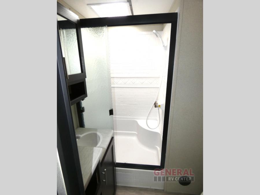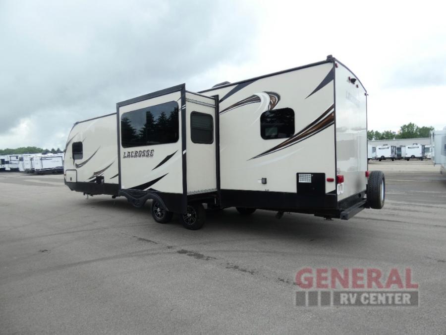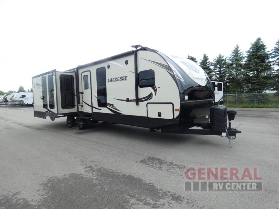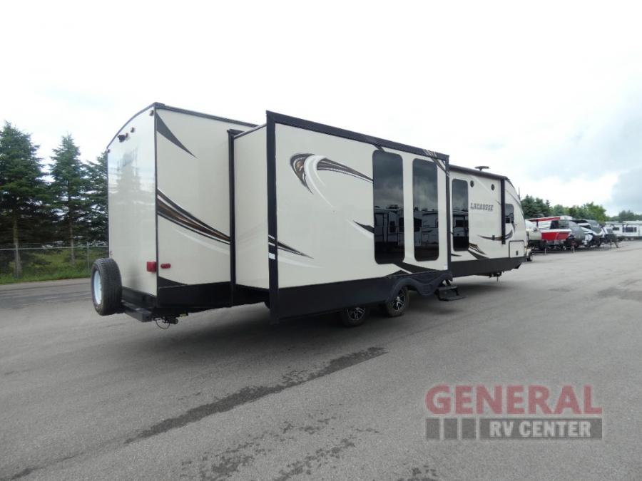 Wherever your camping adventures lead you, you will want a luxury LaCrosse travel trailer. Throughout each model you will find attention to detail from the shaker style cabinet doors, single bowl stainless steel sink, and residential J-spout kitchen faucet to the "One Touch" electric awning. You will find upgraded residential carpet with a pad, and in the living room there is an exclusive oversized MAX slide out offering nearly 40 cu. ft. of additional living space. MAX protection is found in the exclusive ETERNABOND construction which includes an enclosed and heated underbelly plus heated holding tanks and more. The mandatory Advantage Package includes the following - Universal Docking Center, electric tongue jack, a Furrion residential cooktop, solid surface countertops, a large stainless steel refrigerator, and so much more!