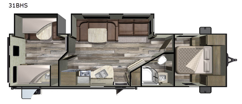 The Starcraft Mossy Oak Lite 31BHS is built for outdoor enthusiasts who want comfort, durability, and versatility. With dual bedrooms, indoor and outdoor kitchens, and thoughtful interior layouts, this travel trailer is perfect for family adventures or weekend getaways.