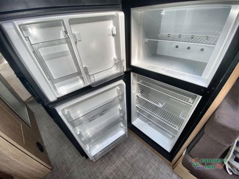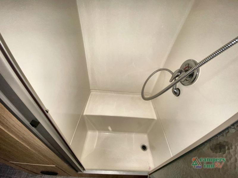 After you reach your favorite destination and set up camp, then come inside and enjoy the comforts throughout this travel trailer. The front dinette, and sofa are a great spot to linger and enjoy a cup of coffee or sip of wine while enjoying the view out of the panoramic windows. As you head toward the rear you will find a split bathroom with a seated shower on one side, and a private toilet including a sink on the opposite side. When you are ready to call it a night, the walk-around queen bed includes a pillow top memory foam mattress allowing you sweet dreams each night. And when you want more outside time, relax under the awning which offers an outdoor living space protected from the sun and elements.