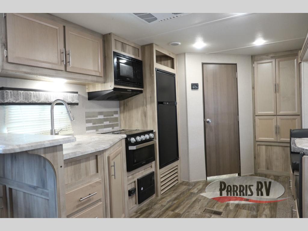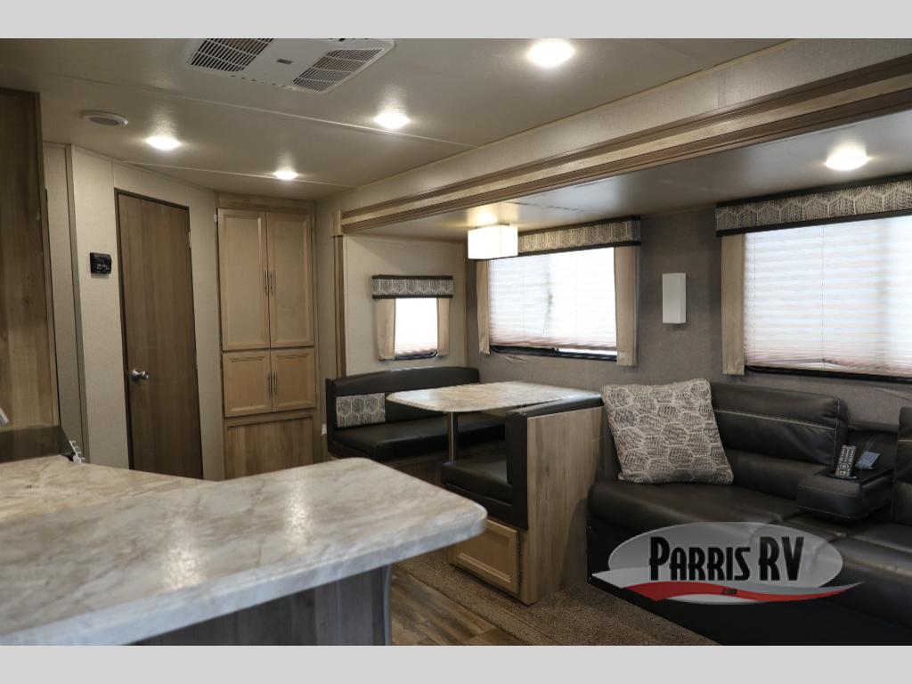 Your family will enjoy spending the weekend with you in this Catalina Legacy Edition travel trailer! You'll find a 32" flat screen TV in the living area so that you don't have to miss out on watching your favorite sports team while you're gone, and the breakfast bar with stools is a neat feature that allows you to sit down and chat with the chef who is preparing dinner on the three-burner range. The wardrobe/pantry will be where you find all of the spices and canned goods that you stocked up on before the trip.
