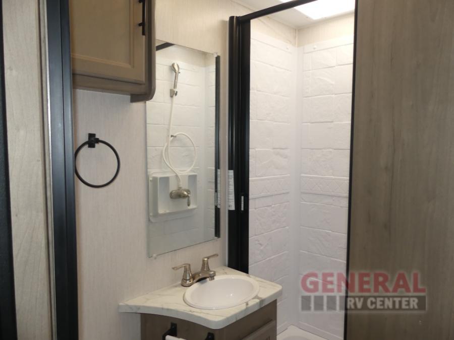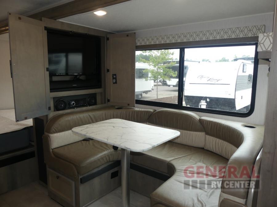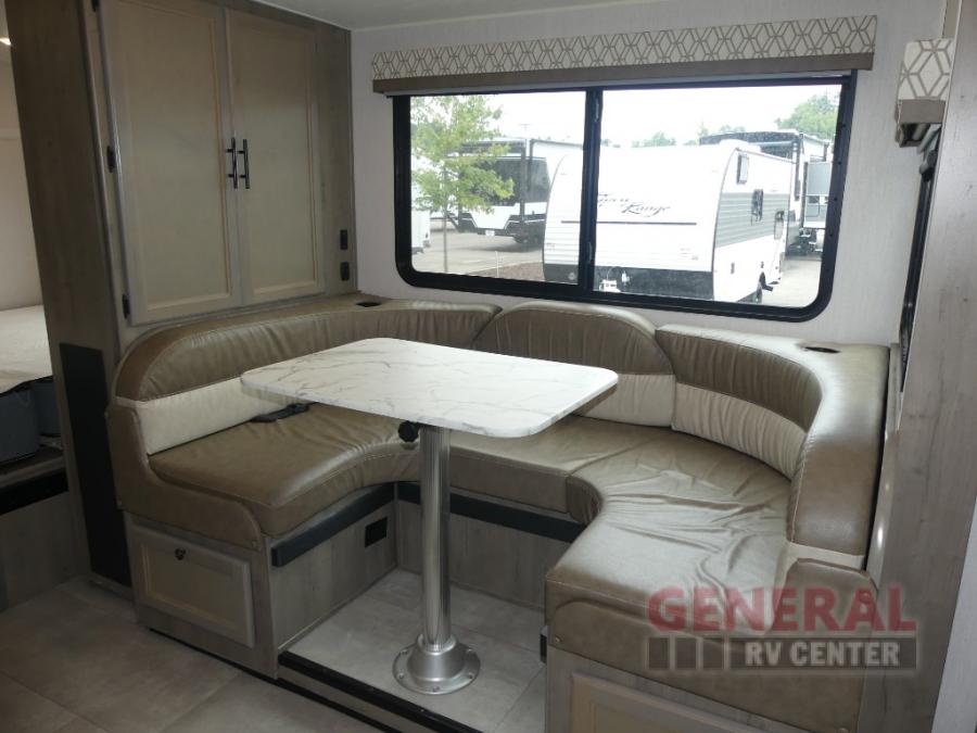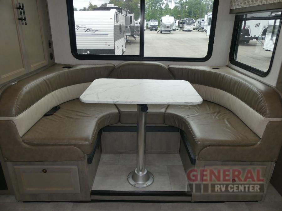 Do you dream about traveling to far destinations and enjoy attending events with the comforts of your own bathroom and bedding? This Prism motor home makes traveling and sleeping comfortable for all. You can rest on the queen bed while the kids or your guests sleep on the cab-over bunk or the U-shaped dinette once prepared for bedtime. You will appreciate the convenience of the rear corner bath no matter where you travel. And the cook will surely love heating up leftovers in the residential microwave oven for quick meals when on the go.
