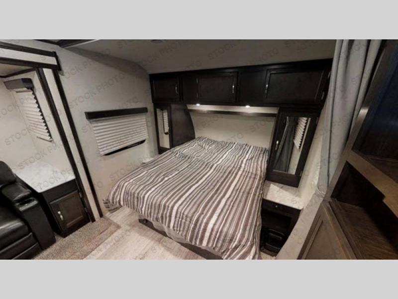 Take this Spirit Ultra Lite travel trailer with you on your next adventure and enjoy the freedom you have to explore comfortably! The full kitchen with its three-burner range top and stainless steel microwave will be extremely helpful each morning as you prepare a batch of pancakes and a pan of bacon. You will be grateful for the radius shower in the full bathroom so that you can easily get cleaned up and prepared for the day ahead. The sofa slide is convenient because it extends out which means that you have more interior living space, and the two end tables will be perfect for holding drinks and snacks as you sit and relax on the sofa.