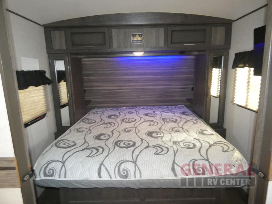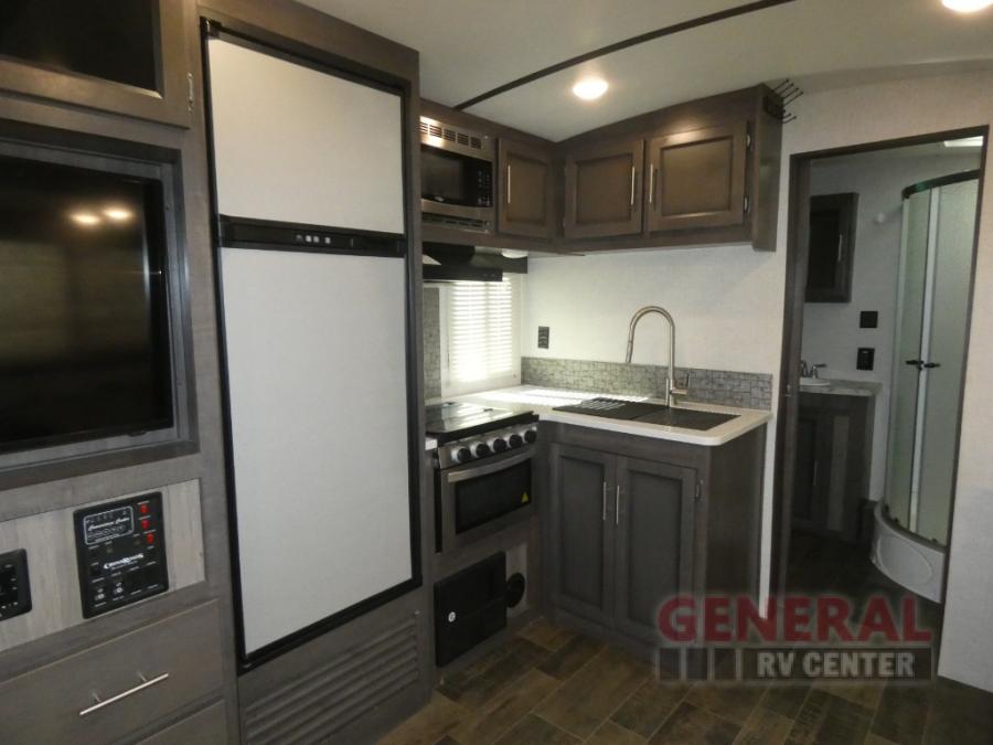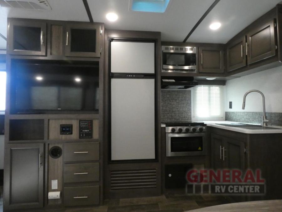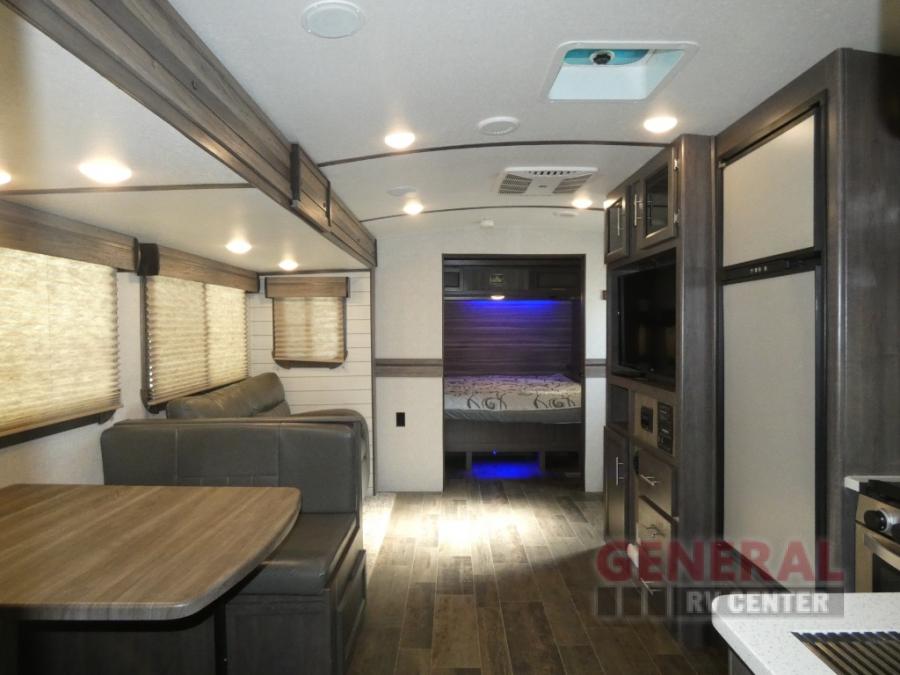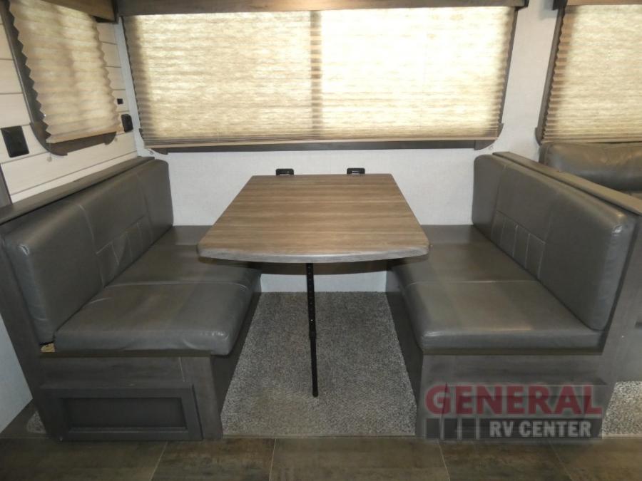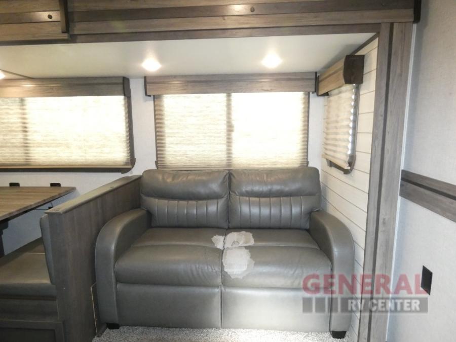 When it's time to upgrade your RV, take a look at this travel trailer that features a large slide out to provide more interior space! Within the slide out you'll find a tri-fold sofa and an XL dinette that will be perfect for enjoying meals together, playing a game of cards, or taking a quick nap after a long hike. Get freshened up in the full rear bath that includes a linen closet and a medicine cabinet for your belongings. The chef of the family will love their choices to cook inside on the cooktop or outside on the outdoor camp kitchen. There is even an outdoor refrigerator to hold cold drinks! After a long day of adventuring, the king bed in the front private bedroom will be calling your name and the kids can convert the furniture for a great night's rest!