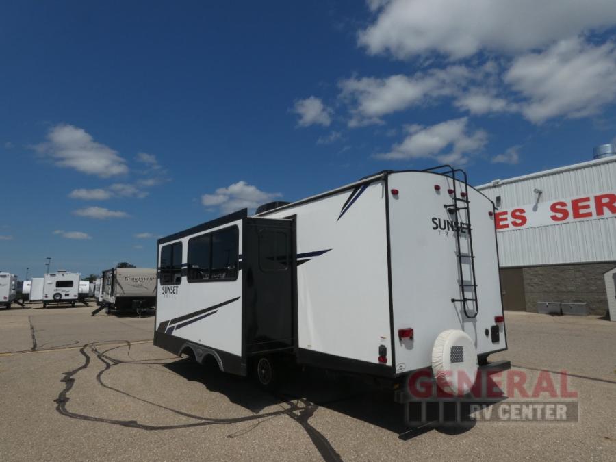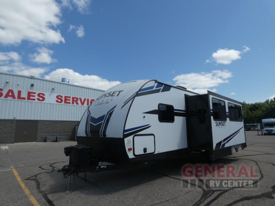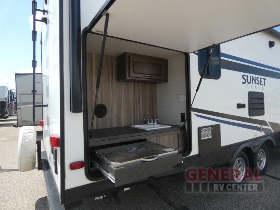 The Sunset Trail travel trailers by CrossRoads RV allow you to extend your camping season with the Extreme Weather Package that includes a reflective heat barrier, a heated and enclosed underbelly, and a 13,500 A/C. You'll enjoy many convenience features such as Keyed-A-Like locks, an HDMI Bluetooth stereo, solid doors to the bedroom, and cross ventilation slide windows that allow the fresh spring air in.