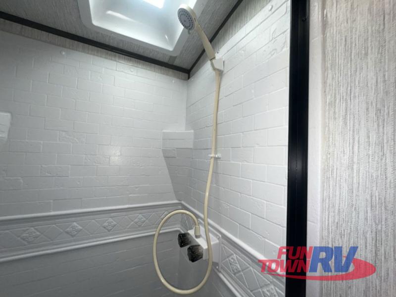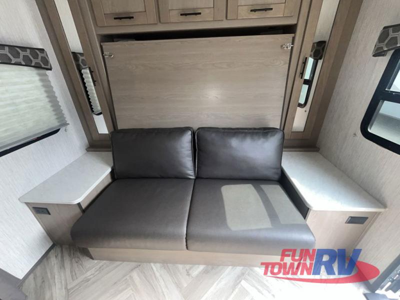 With this Shadow Cruiser travel trailer, you can confidently travel in style. The Murphy bed is a wonderfully multi-purpose amenity because of its ability to transform from a couch into a bed, giving you the space you need during the day to lounge together as a family. With the addition of the booth dinette, you can sleep three people in this trailer. In the mornings, you will appreciate the rear bathroom for its added seclusion as you prepare yourself for the day ahead, and the three-burner range in the kitchen will be your favorite addition to this trailer while you scramble up a few eggs and cook up some bacon for a hearty breakfast feast.