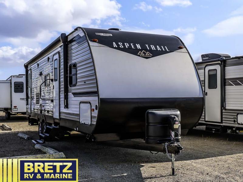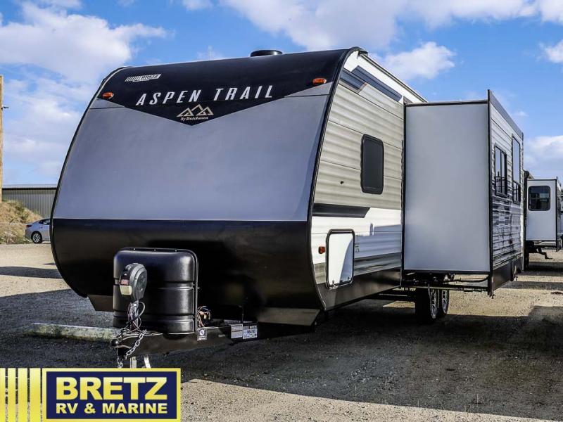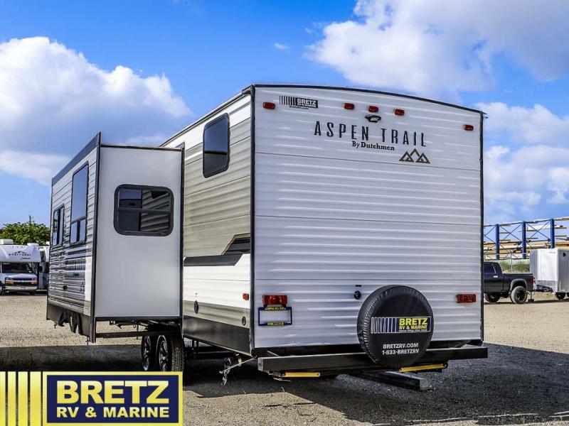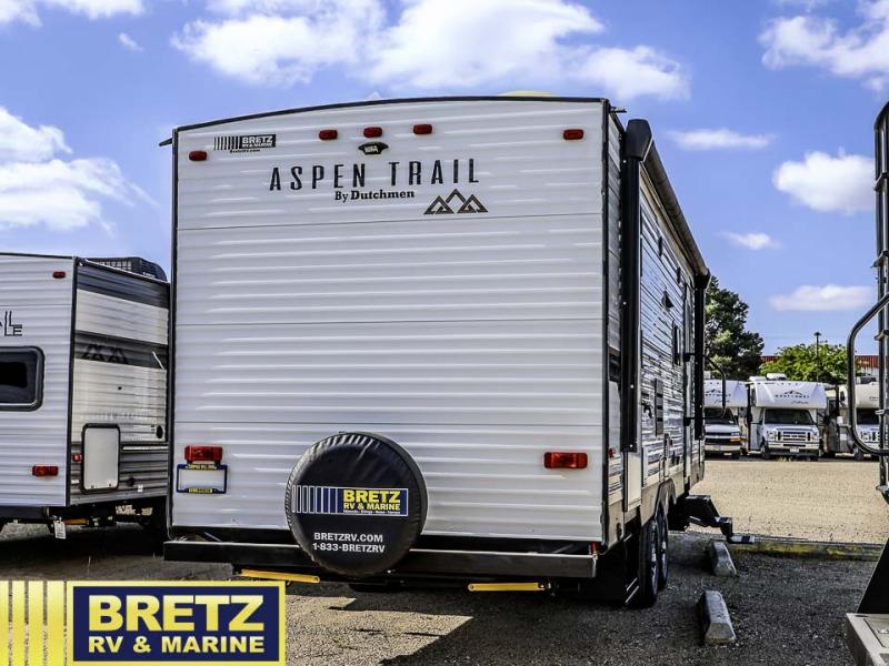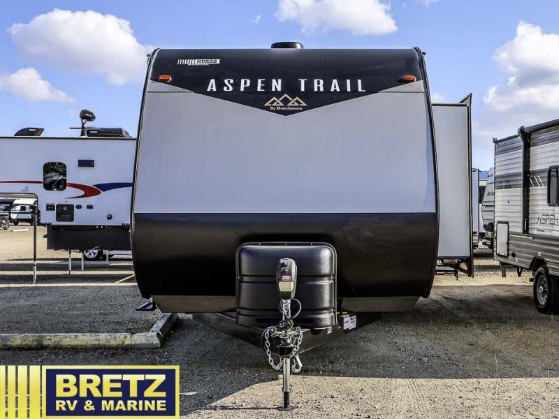 Each Aspen Trail travel trailer by Dutchmen RV is ready to hit the road anytime of year thanks to the fully-enclosed underbelly keeping all of its vital components protected from the elements! These units are packed with standard features that will make your camping trips better and easier from the seamless thermofoil counter tops with a sink cover to the exterior mega pass-through storage compartment with LED lighting. Everyone will enjoy themselves, even your tallest member, thanks to the 82" interior height and the 72" slide out height. The Aspen Trail package comes standard on every model and includes luxurious features like a queen Everdream mattress, a Bluetooth stereo with CD/DVD capabilities, and upgraded Beauflor linoleum throughout. So, what are you waiting for? Come choose the Dutchmen RV Aspen Trail model that best suits you!