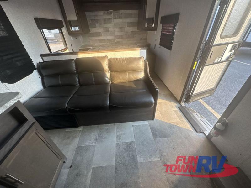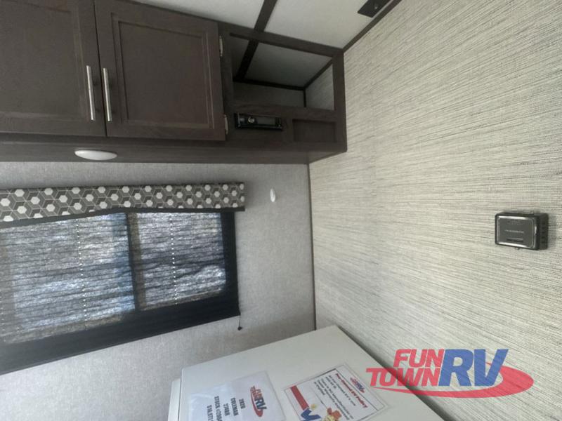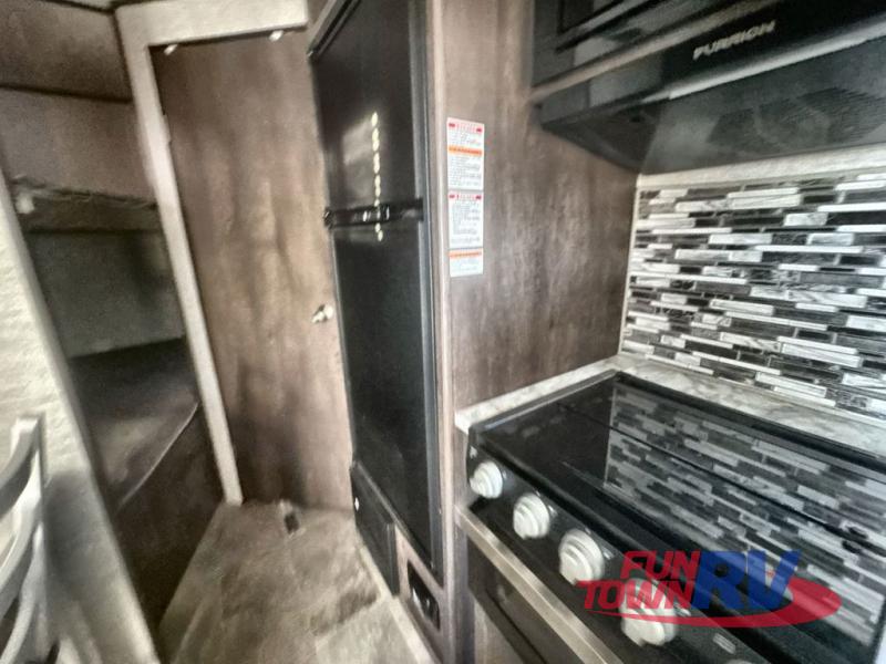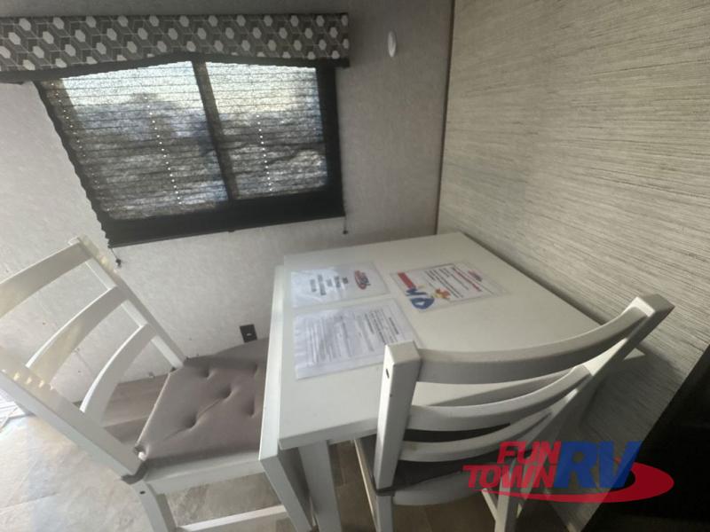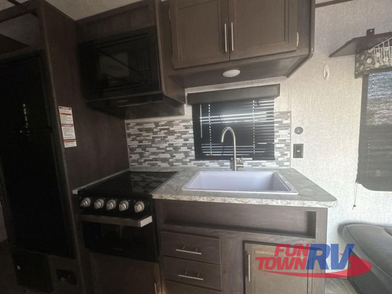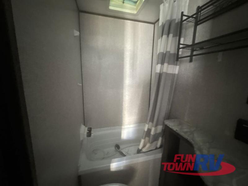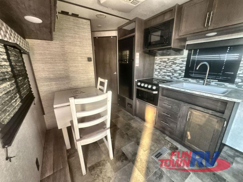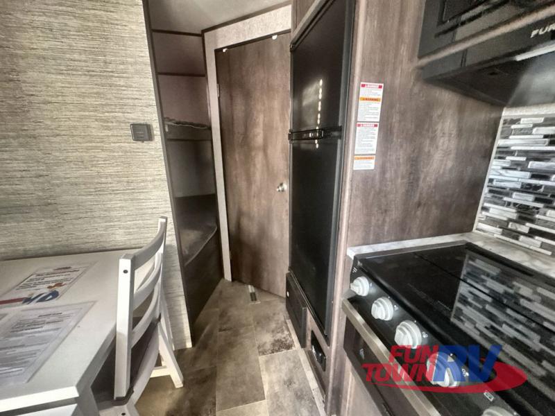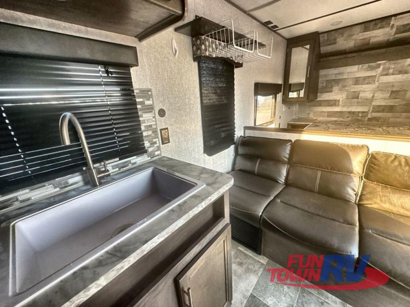 Don't let memorable and adventurous getaways pass you by! Grab this Coleman Lantern LT Series travel trailer and set out on your next great expedition. The full rear bathroom with its skylight will come in handy for your morning routines, and the full kitchen will give you an opportunity to make warm meals for the group. You will be amazed by the amount of sleeping choices this trailer has, enough to sleep eight to nine people comfortably. The bunks will be the kids favorite, and the walk-around residential queen bed will be a nice oasis at night, plus the furniture doubles as sleeping space.
