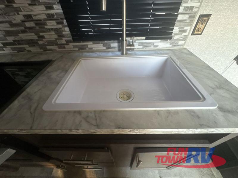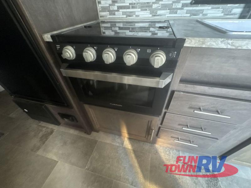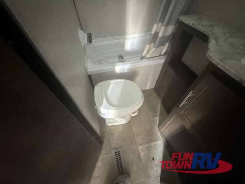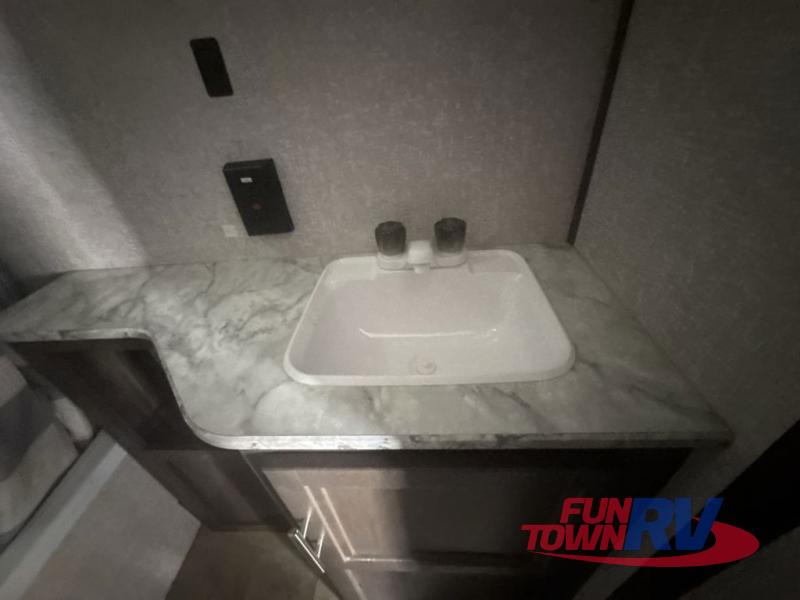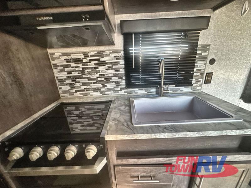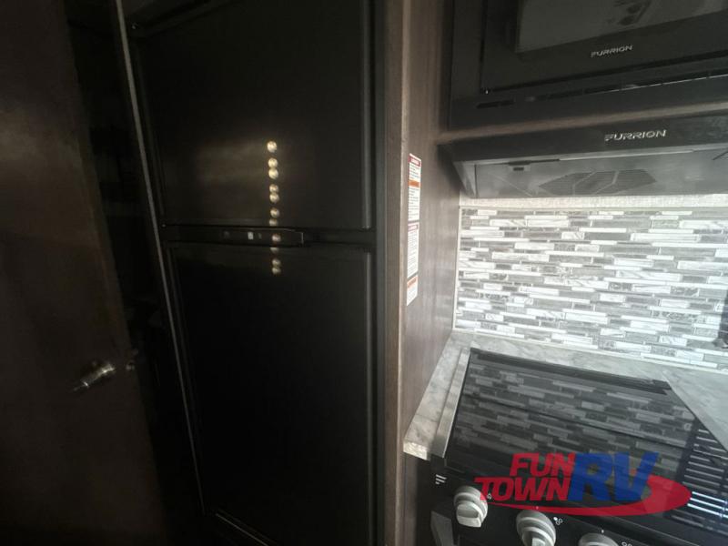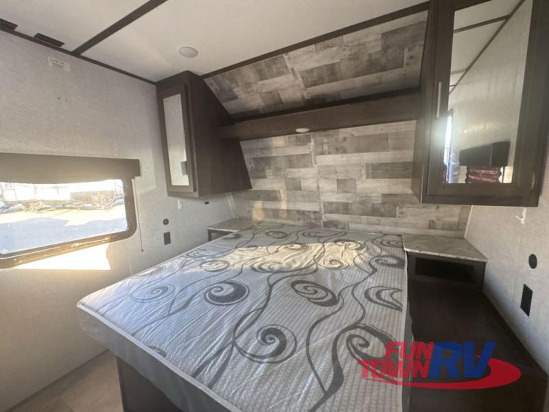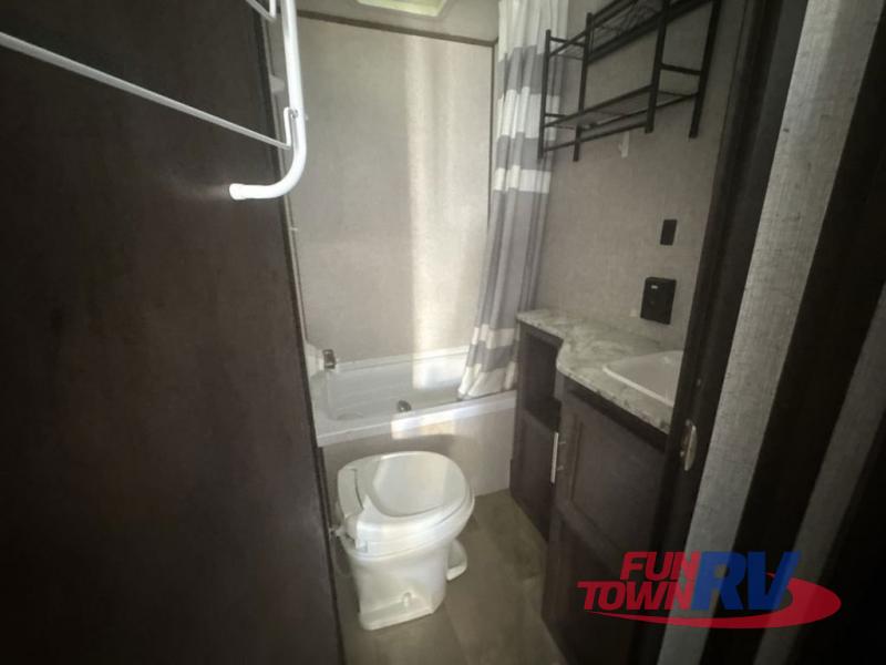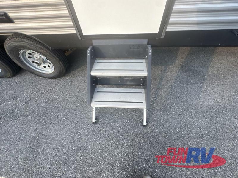 Don't let memorable and adventurous getaways pass you by! Grab this Coleman Lantern LT Series travel trailer and set out on your next great expedition. The full rear bathroom with its skylight will come in handy for your morning routines, and the full kitchen will give you an opportunity to make warm meals for the group. You will be amazed by the amount of sleeping choices this trailer has, enough to sleep eight to nine people comfortably. The bunks will be the kids favorite, and the walk-around residential queen bed will be a nice oasis at night, plus the furniture doubles as sleeping space.