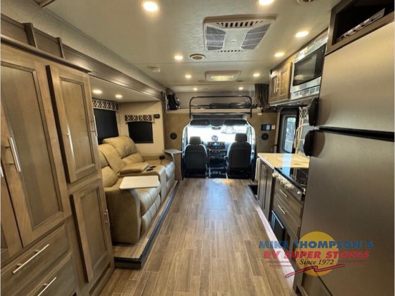 You will find that each one of these Dynamax isata 3 Class C diesel motorhomes are different by design with dark-tinted frameless windows, an aerodynamic fiberglass front cap with cab-over cabinets, and full body paint packages with a front-end diamond shield. Each model is built with a Mercedes-Benz® Sprinter chassis, the Truma® Aqua Go Comfort™ on-demand water heater, and MaxxAir® power vents so you know you're getting an efficient motorhome. You can be sure to have a peace of mind while you travel thanks to the aluminum truss structured roof with a crowned, one-piece fiberglass skin. Start doing things different with one of these Dynamax isata 3 Class C diesel motorhomes today!