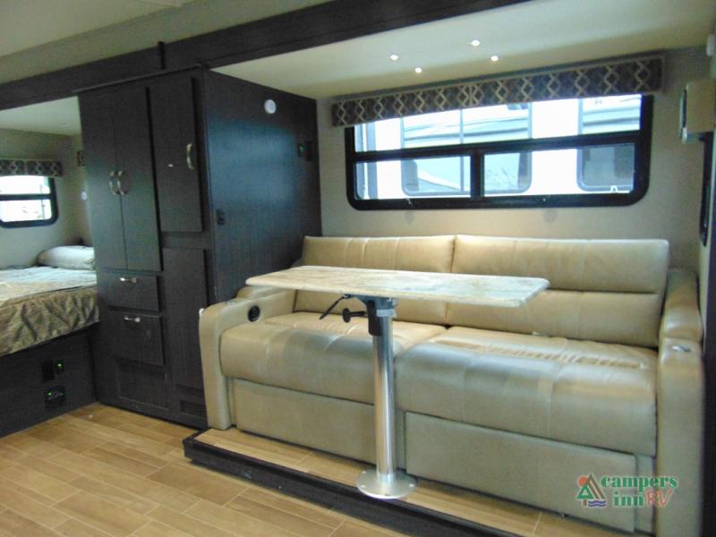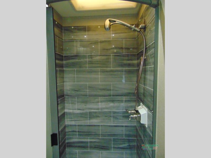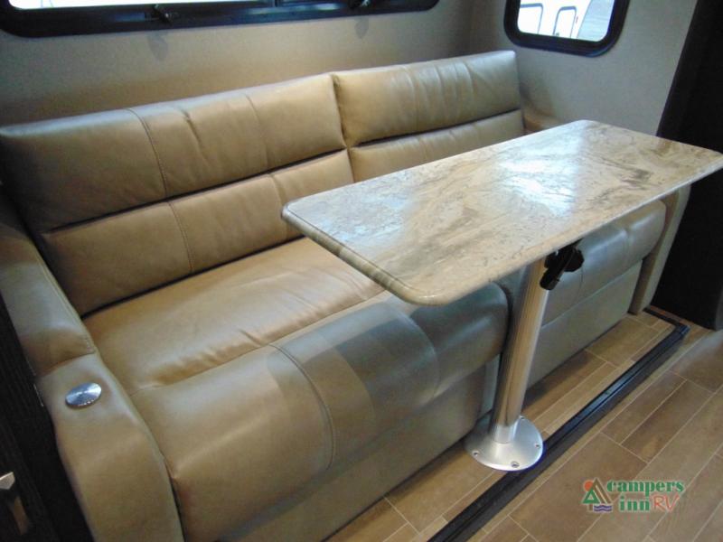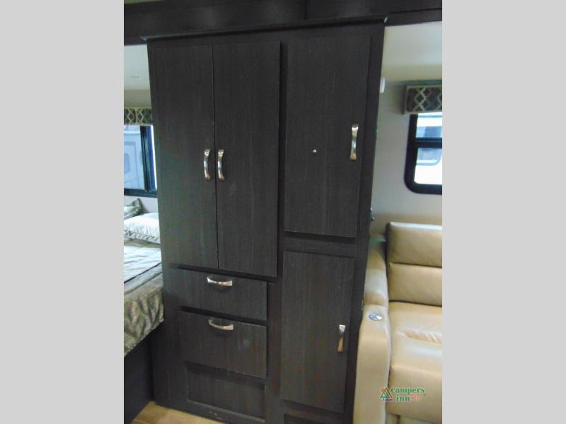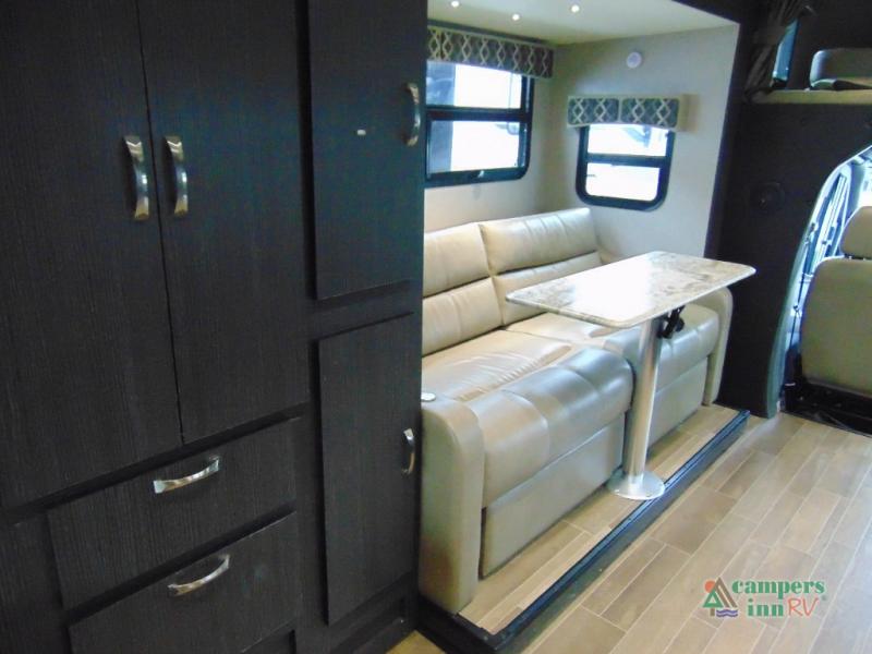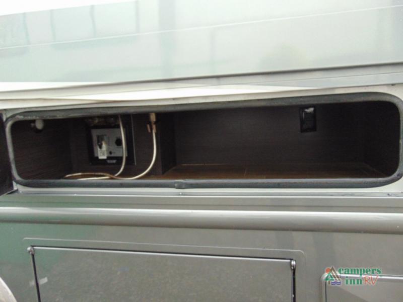 This 24FW Class C diesel motorhome gives you the luxuries of home while traveling on the road! The full wall slide out helps to really open up the interior when you are parked. When you aren't enjoying a meal or playing a card game at the Tri-Fold Sleeper Sofa, you can head to the rear and relax on the gel-infused memory foam queen-size bed while you watch your favorite movie on the 32" LED TV. You won't have to leave anything behind either thanks to the exterior storage area, the underbed storage, and the overhead cabinets throughout the inside. You're going to love getting clean in the rear corner bathroom with the Oxygenics body spa RV shower head and the residential vanity with a stainless steel sink provides the perfect spot for you to get ready!