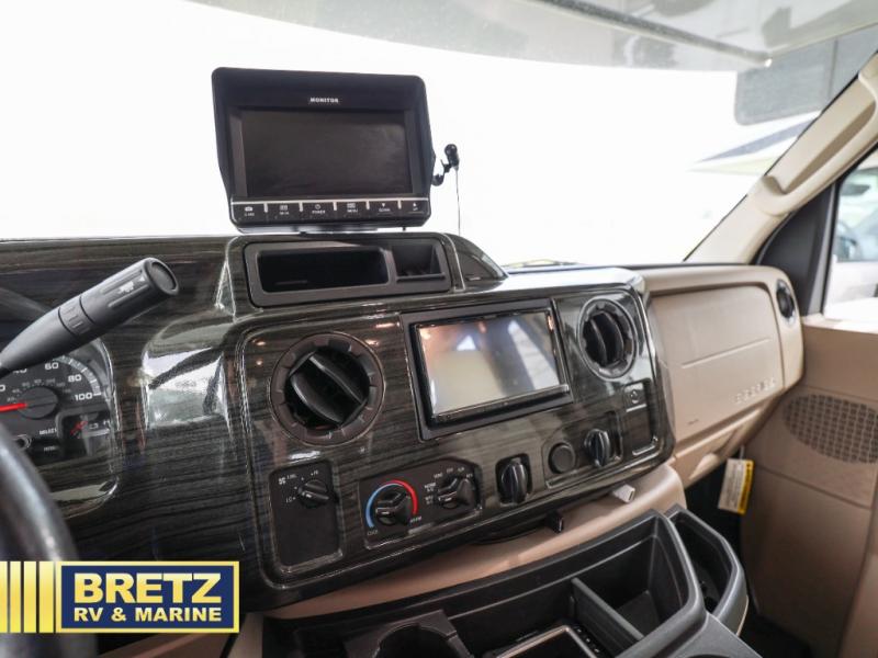 Set your sights on this motorhome that features a full wall slide for maximum interior space. After you've traveled all day, whip up some lunch on the three burner range and enjoying eating together at the Dream Dinette. If you're needing a rest before you head out on the road again, the queen bed with a gel-infused memory foam mattress will provide all the comfort you need. You will love the full bath that includes an Oxygenics Body Spa RV shower head, a skylight, and a stainless steel sink with a residential faucet just like you're used to at home. Bring along all of your valuables since this model features plenty of storage space, including a large cedar-lined wardrobe for all your clothes.