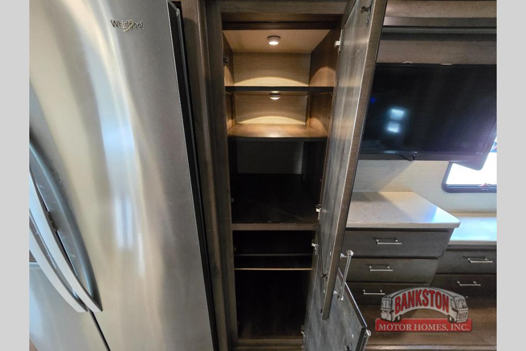 You're going to love traveling in this Entegra Emblem Class A gas motorhome! It has features to make you feel right at home, like the 50" TV on a lift above the booth dinette and two Blu-Ray players, plus the vinyl flooring will make spills easier to clean. Inside the rear private bedroom, you will enjoy a good night's rest on the king bed, and there is a dresser, a TV, a wardrobe, and an optional washer/dryer that can be added to the cabinet. You can easily whip up your best meals in the kitchen and store your favorite snacks inside the pantry and delicious leftovers inside the 21 cu. ft. residential refrigerator. If you need more sleeping spots, then simply add the optional drop-down bunk above the cockpit!