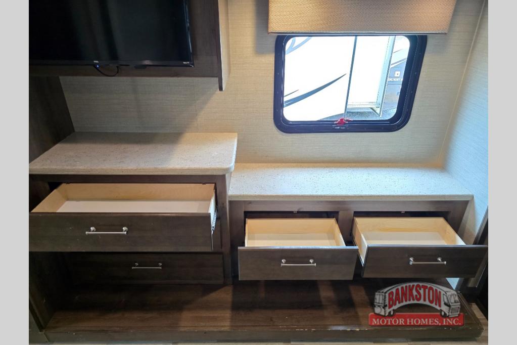 Any Entegra Coach Emblem Class A gas motorhome will provide you with the luxurious lifestyle that you have been dreaming of. Each unit features a one-piece fiberglass front cap with a 120" panoramic windshield allowing you to have a great view as you travel. Bead-foam insulation (R-24 max roof, R-9 max floor, R-8 max walls), high-gloss, gel-coat fiberglass walls, and a seamless, crowned fiberglass roof provide all the protection you need from the elements keeping you comfortable in any type of weather. Inside, you'll enjoy solid-surface countertops throughout, a 7' ceiling for added space, linoleum flooring in the cockpit, a Sony in-dash radio with GPS, plus so much more!