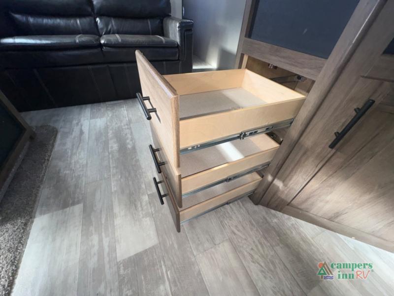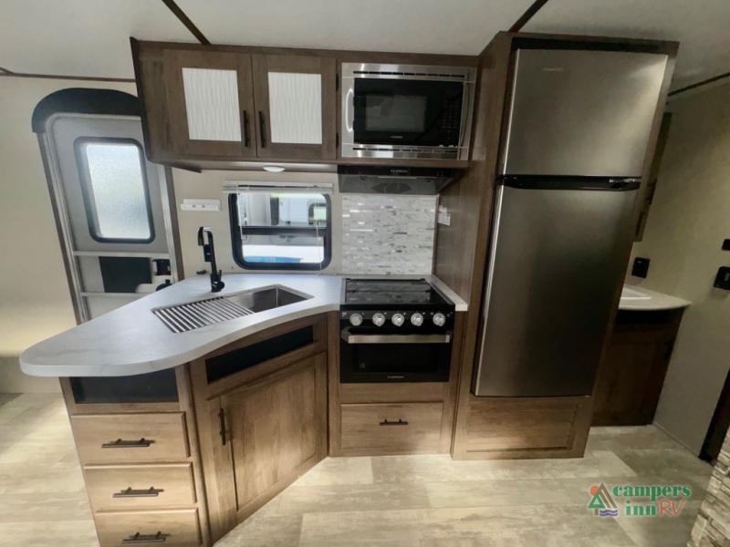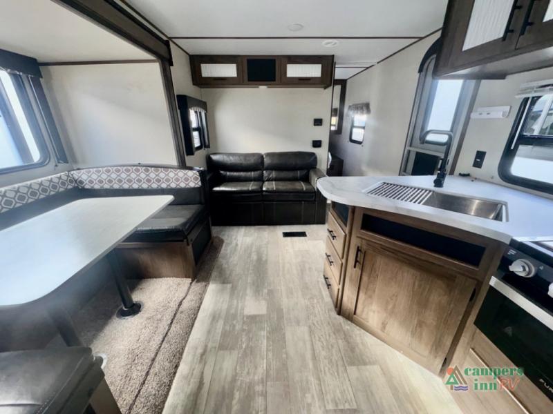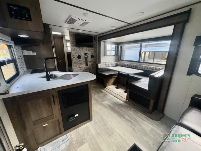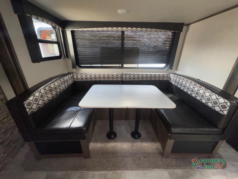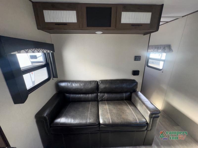 The search is over because this Avenger travel trailer by Prime Time RV is exactly what you've been looking for! From the sofa and U-shaped dinette to the queen-size bed and double-size bunks, your sleeping accommodations are taken care of. You will also find all the kitchen amenities needed to make snacks and meals while away enjoying the great outdoors, like a three-burner range top and large 17" oven, and you will also appreciate the addition of the outdoor speakers that will allow you to listen to your favorite music as you gather around the campfire for s'mores each night.