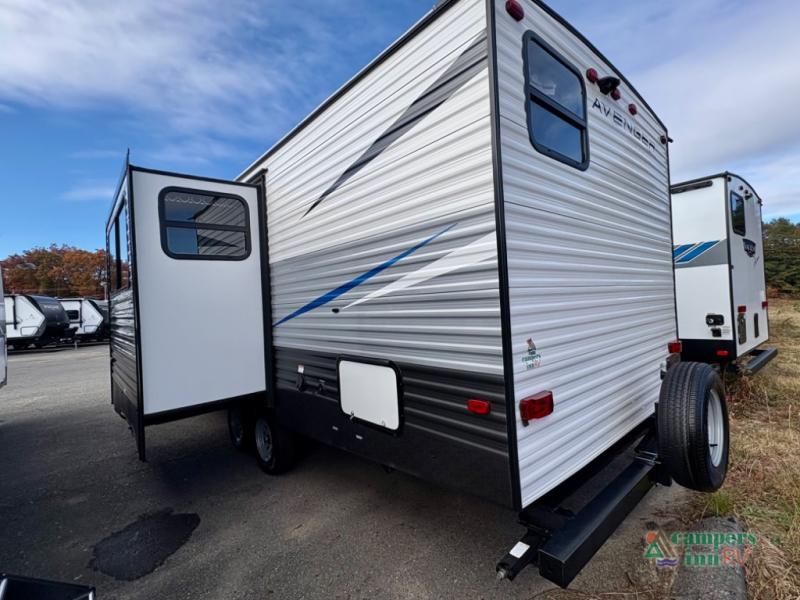 Don't waste any time getting out to your favorite getaway spot with an Avenger travel trailer from Prime Time RV! The Avenger will provide long-term quality and durability because of its exclusive EVERLAST construction, Dexter EZ-Lube axles, diamond-plate rock guard, and Solid Stance fold-down steps. Plus, the Avenger will also deliver industry-leading beauty on the interior with its designer window treatments, its seamless Carefree Congoleum flooring, its large fully vented windows throughout, and its premium fabrics. You will also be grateful to find a massive under-bed storage space so that you can keep extra luggage hidden away and out of sight.