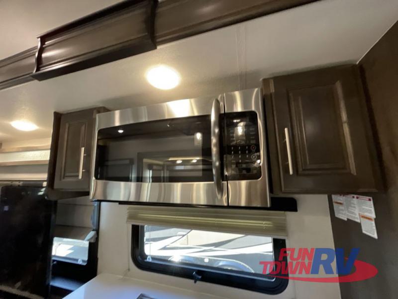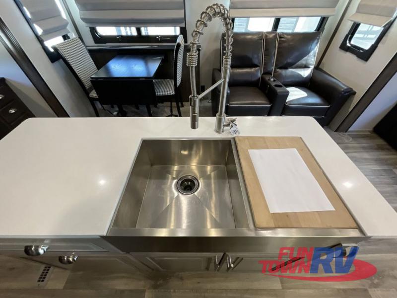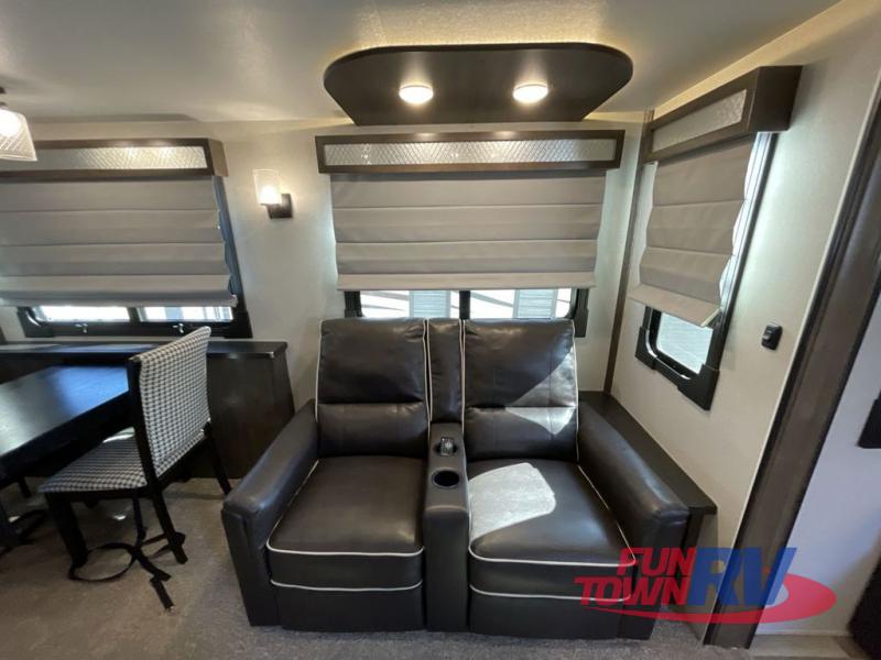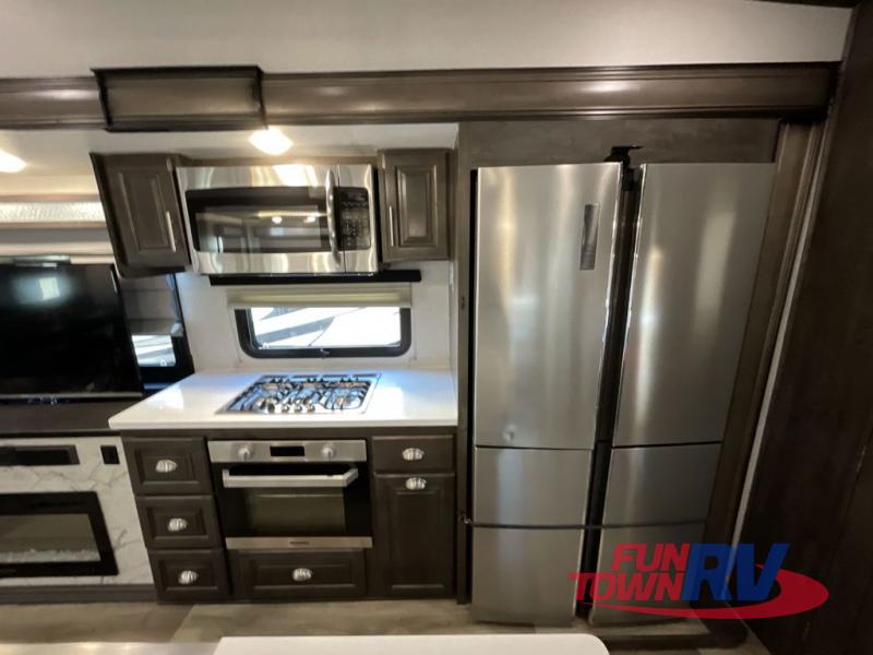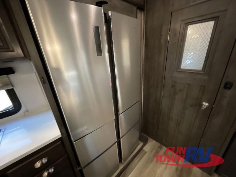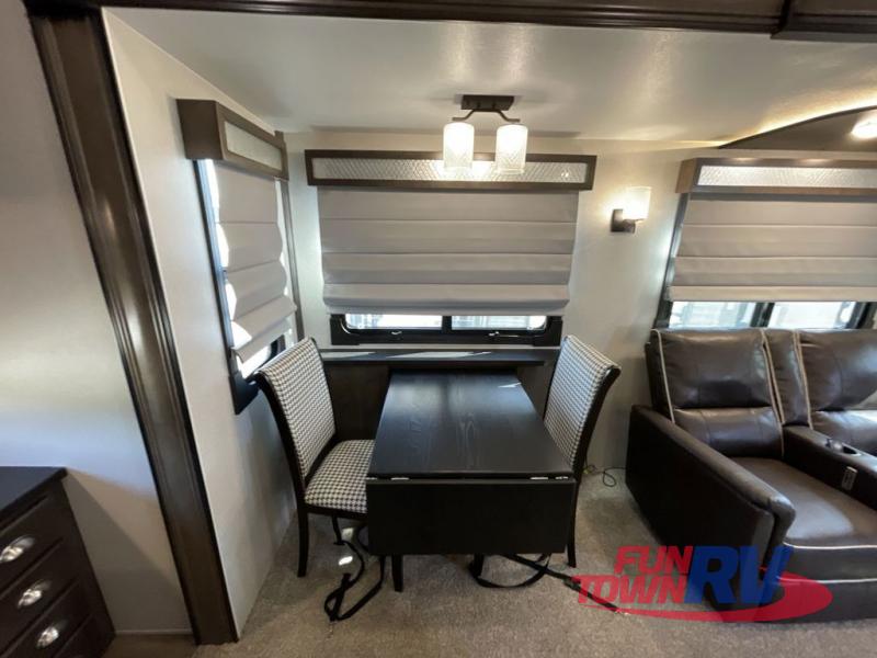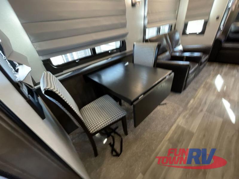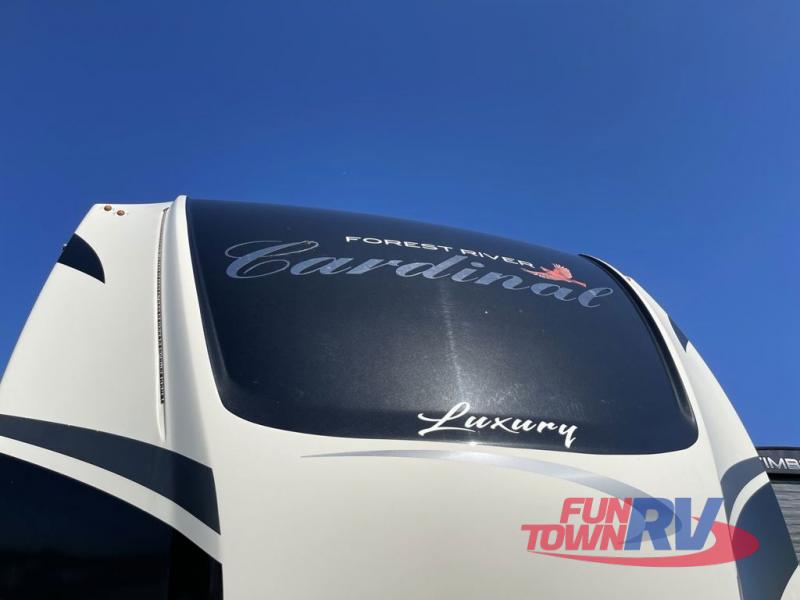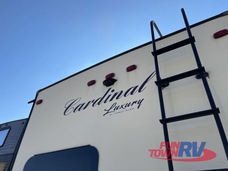 If you need to get work done while camping at your favorite place, then you need this Cardinal Luxury fifth wheel by Forest River! It features a rear desk for you to work at with a walk-in pantry conveniently located right next to you so that you can stay fueled while you work. You will also love the extra counter and storage space from the kitchen island. If mother nature rains on your parade, then you can head indoors and relax comfortably on either the theater seating or the tri-fold sofa while you enjoy the cozy fireplace at the entertainment center!