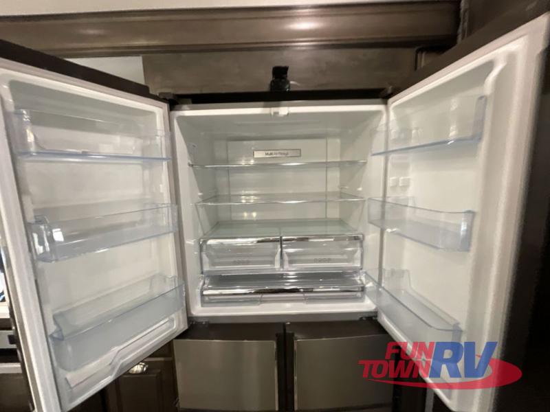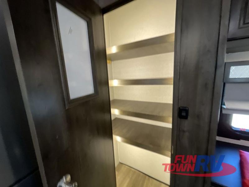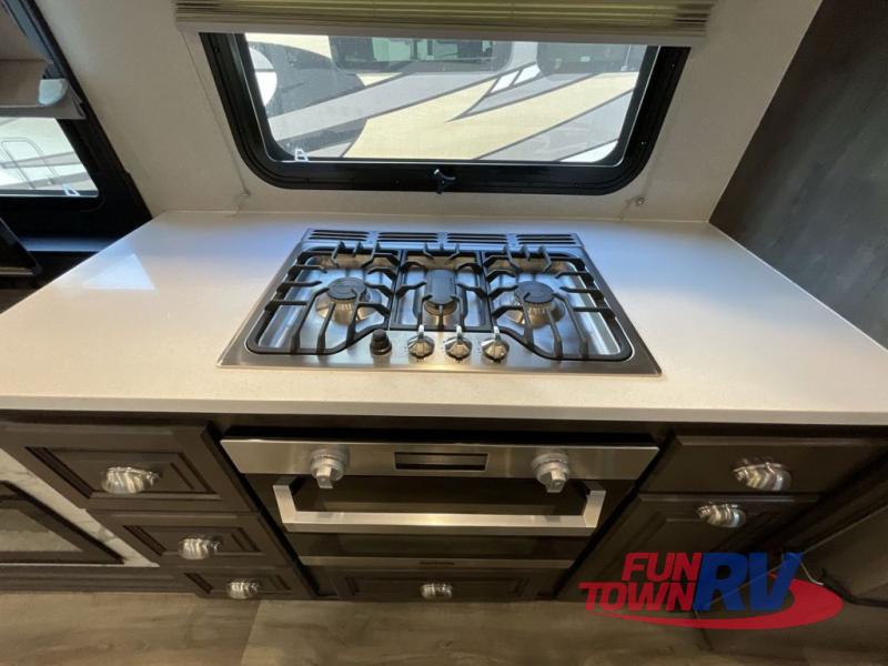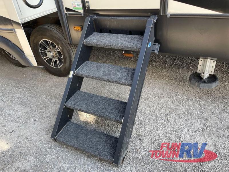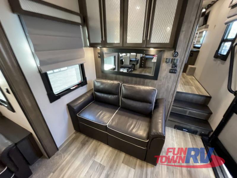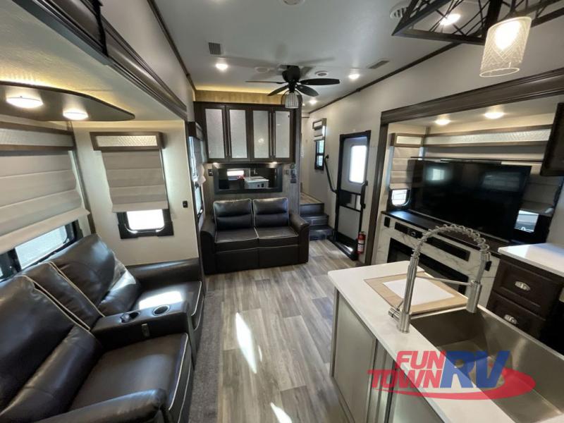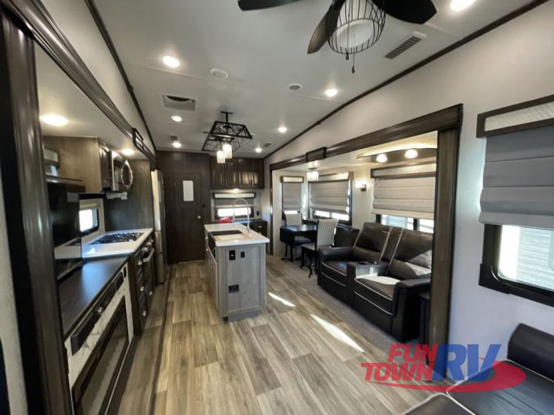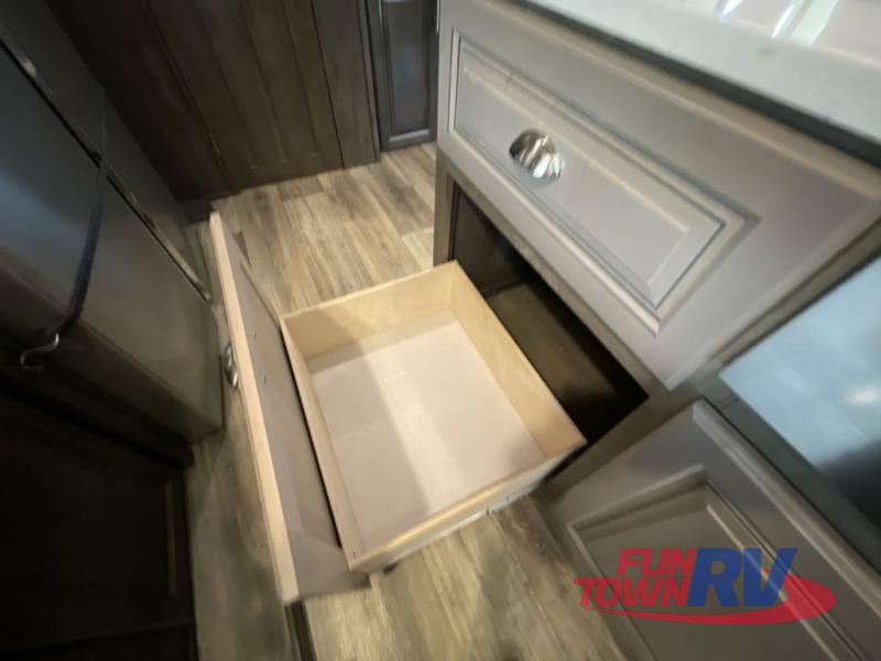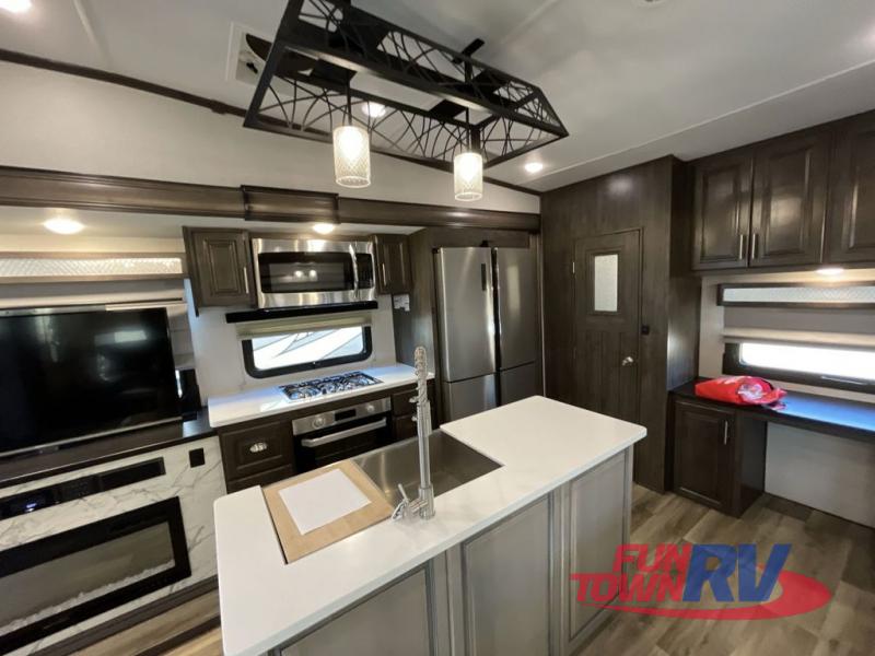 In any Forest River Cardinal Luxury fifth wheel, you will find comfort and convenience both inside and out as these units were built with your enjoyment in mind. Each unit features a vacuum-bonded, welded aluminum structure and includes a “Level Up” 6-point one-touch automatic hydraulic leveling system. Each Cardinal Luxury model also has chambered frame technology and a hydraulic slide system with 2.5" steel rams. You will also appreciate the at-home touches on the interior that give each unit a luxurious feel like the crown molding ceiling and cabinet trim, the electric fireplace, the full-height hanging wardrobe, and the pendant lighting in the kitchen area. The outside of each model also has a high-end look with its premium high-gloss gel-coat fiberglass!