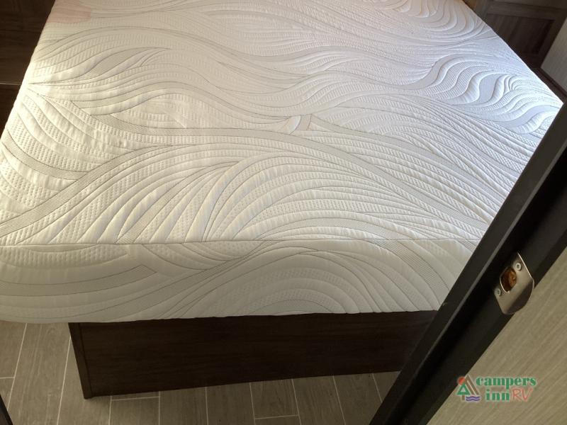 Spacious layout with separate sleeping zones, including a master bedroom and a rear bunk/walk-around kitchen area