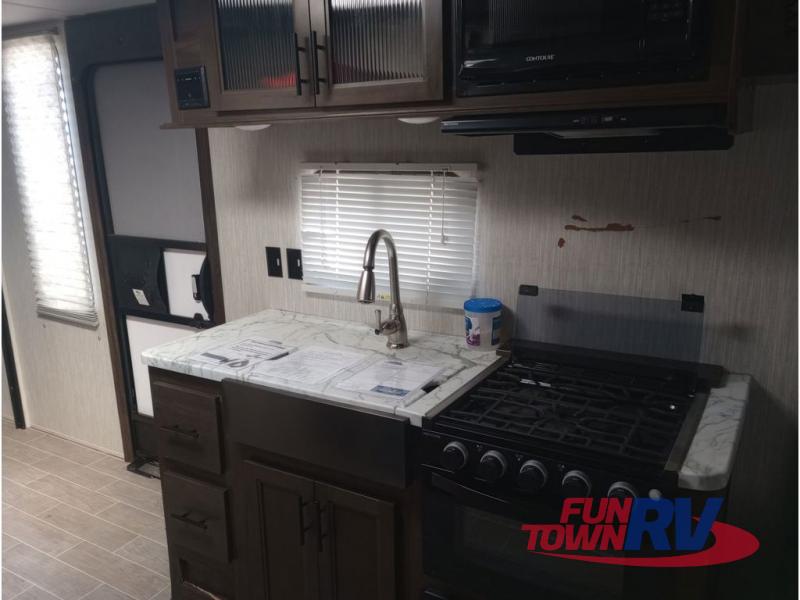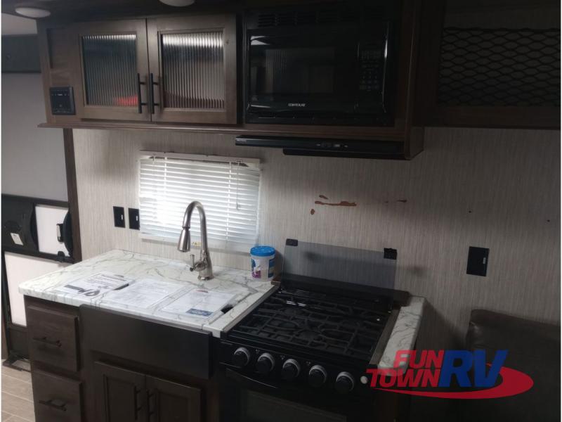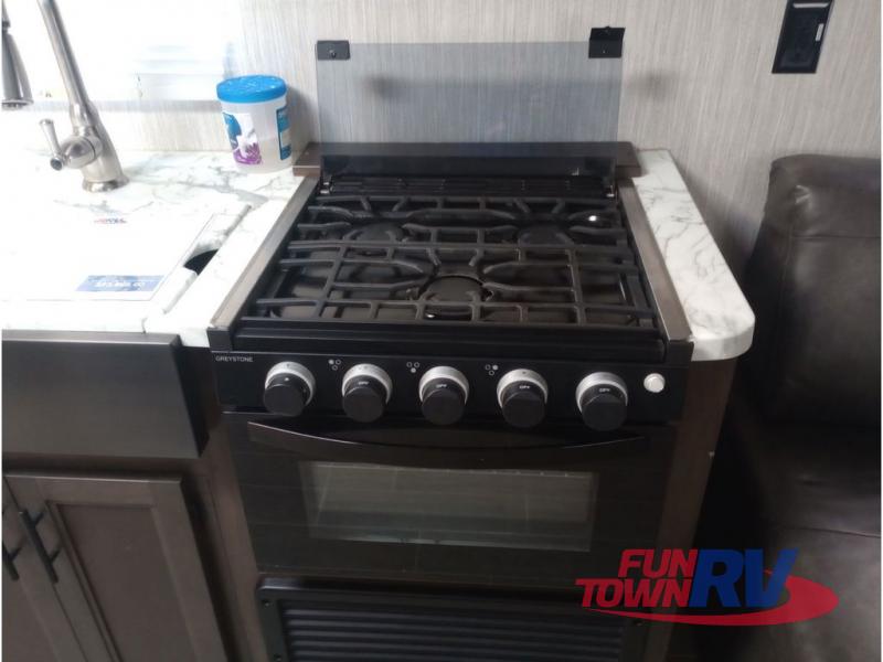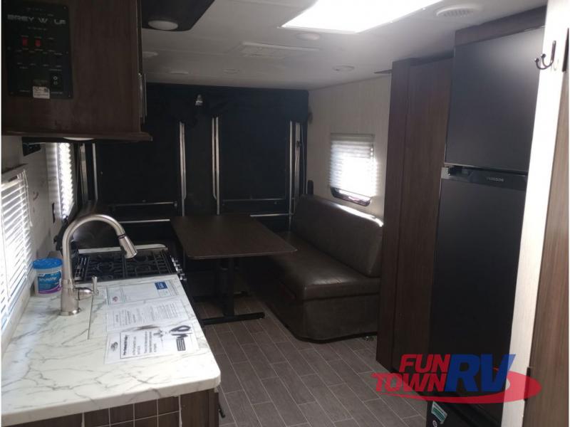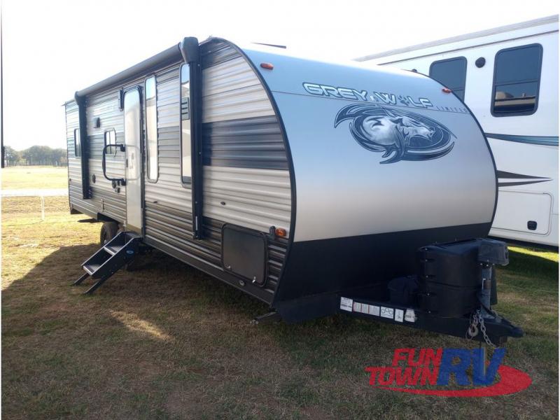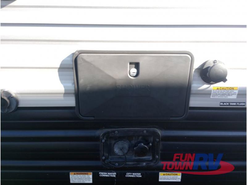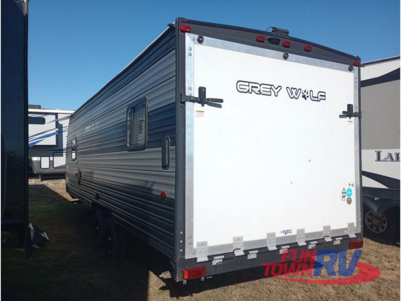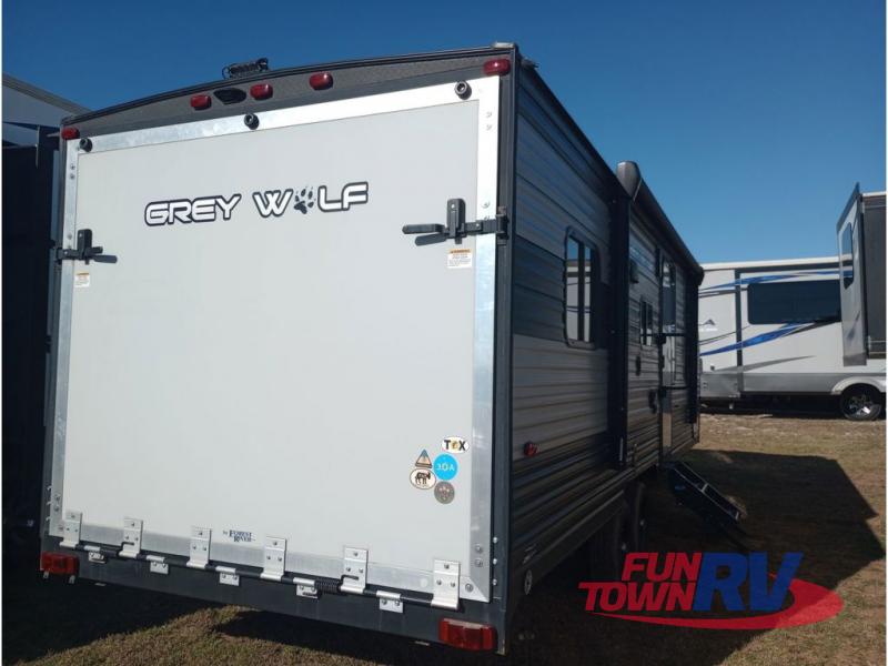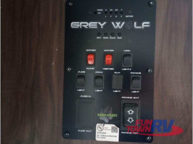All Forest River Cherokee Grey Wolf models are quality built with distinct features and superior comfort in mind, and they are all set at an affordable price point. So, when you get the opportunity to escape the hustle and bustle of everyday life to enjoy all the beauty and wonder that an outdoor adventure holds, the Cherokee Grey Wolf is ready and waiting to help you relax and unwind. Each unit features an outdoor shower with hot and cold water for you to get cleaned up without tracking mud throughout after your adventurous hike, and with the RVQ quick connect, you can easily hook up a low-pressure grill to cook up your best burgers outdoors. Inside, you will enjoy the HDMI entertainment center, the LED lighting throughout, and a kitchen skylight with a shade, and if you get tired of being indoors during inclement weather, the outdoor power awning will provide protection.