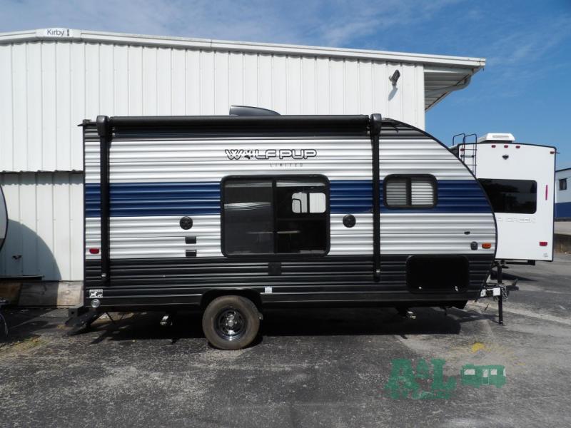 The Cherokee Wolf Pup travel trailer and toy hauler by Forest River are lightweight and easy to tow with ample storage for all your things. The aerodynamic radius front profile allows for better gas mileage, and the one-piece walkable decked roof allows you to easily clean off the unit after a fun weekend. You'll enjoy features such as USB charging stations to keep everyone's phones charged, a power awning with an LED light strip allowing you to stay outside longer, a seamless countertop, and an outside shower with hot and cold water to clean the dishes or even yourself, plus more! Pick the floorplan that works best for you, and start camping tomorrow!