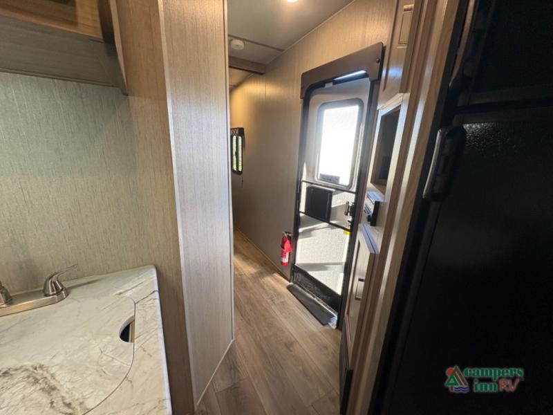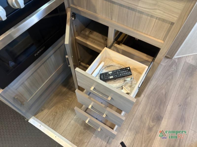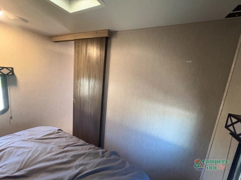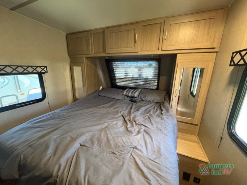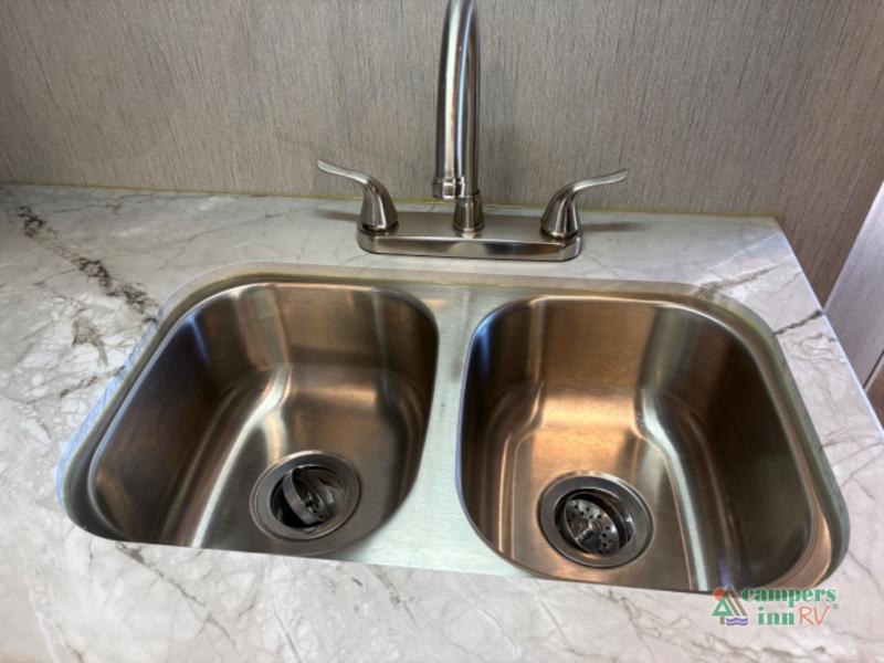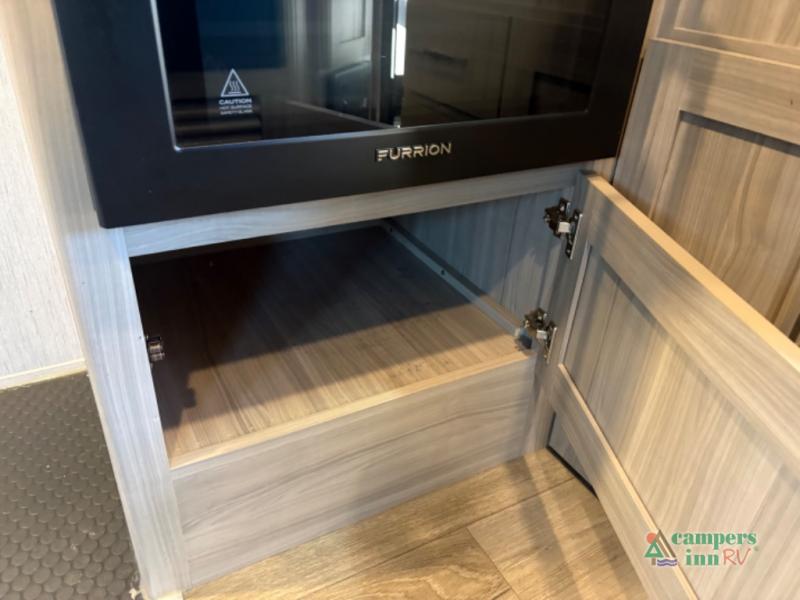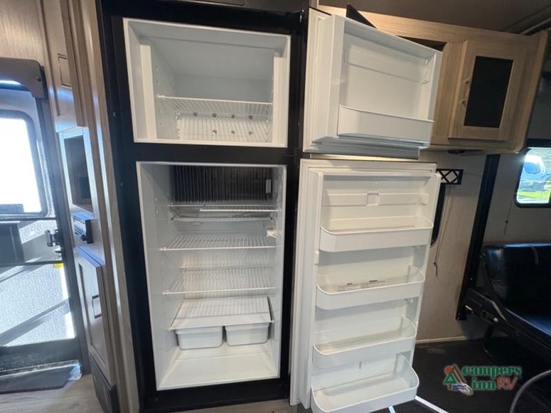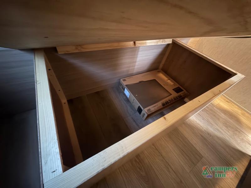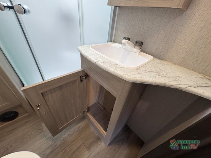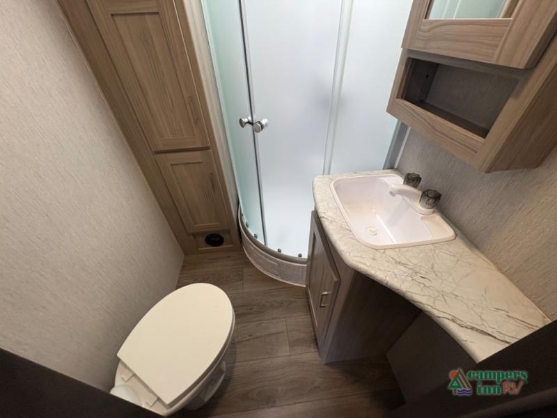 Imagine your toys are secure in the back of the garage in this toy hauler and you are comfortably driving to your favorite off-road park. Now unload your toys, fold down the dual opposing sofas, set up your indoor/outdoor table, and began to relax and have fun. Everyone can take turns on the four wheeler or motorcycles while you make meals in the kitchen or watch the LED TV. You even have a full bathroom to get washed up before bedtime. You can retire to your own 60" x 80" queen bed while the kids or guests sleep on the sofas, or the queen electric lift bed in the garage if you chose to add that option. Off-road fun just got a lot more comfortable in this model!