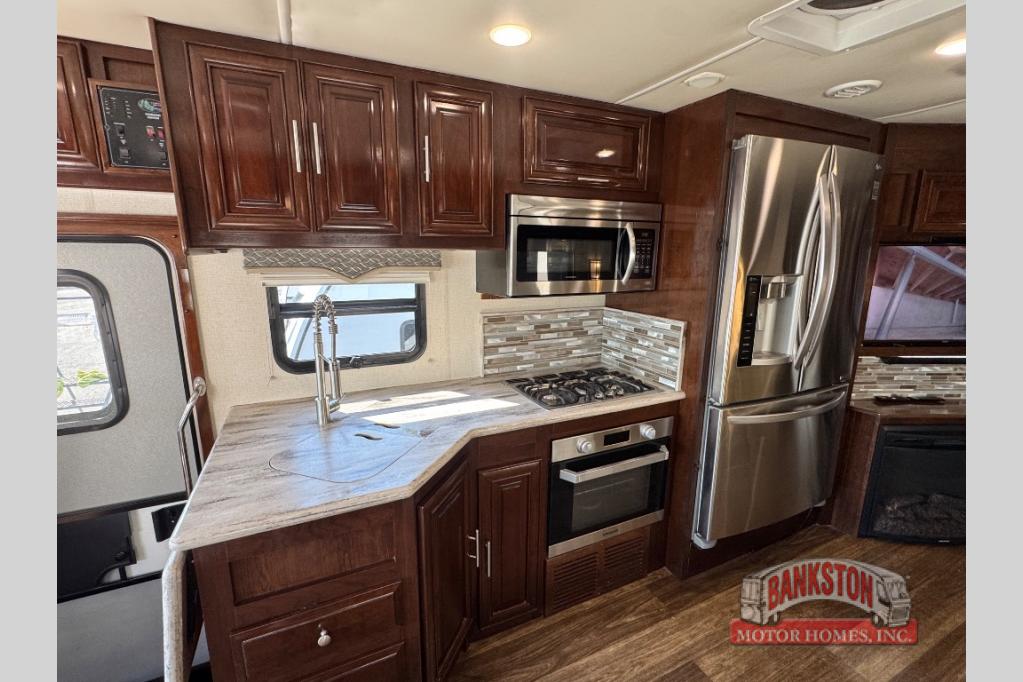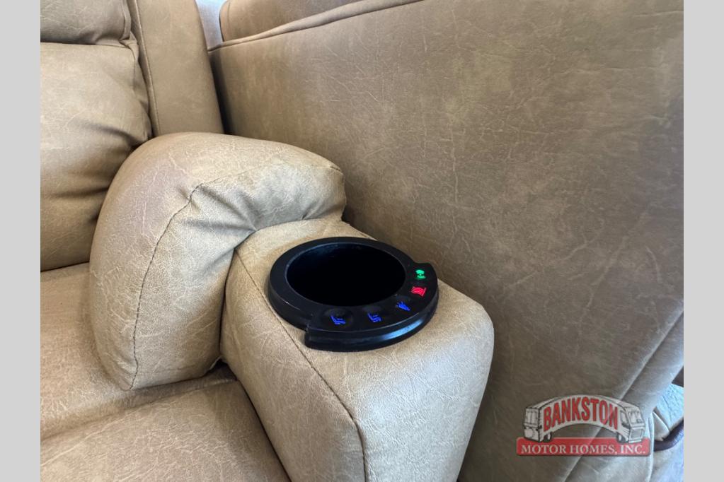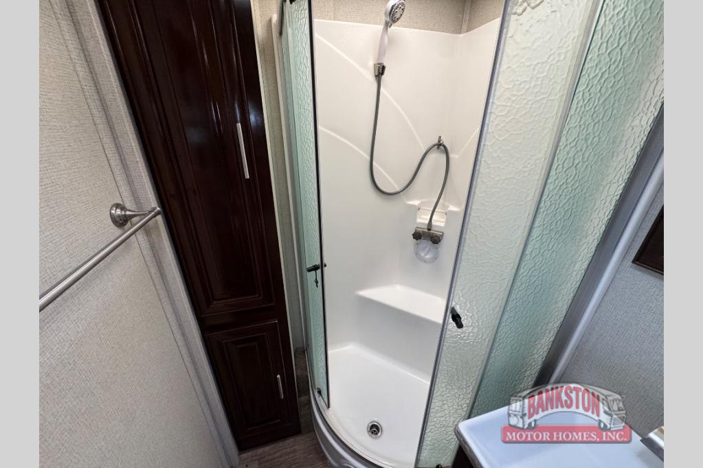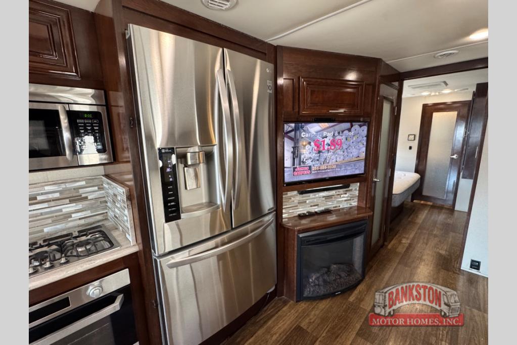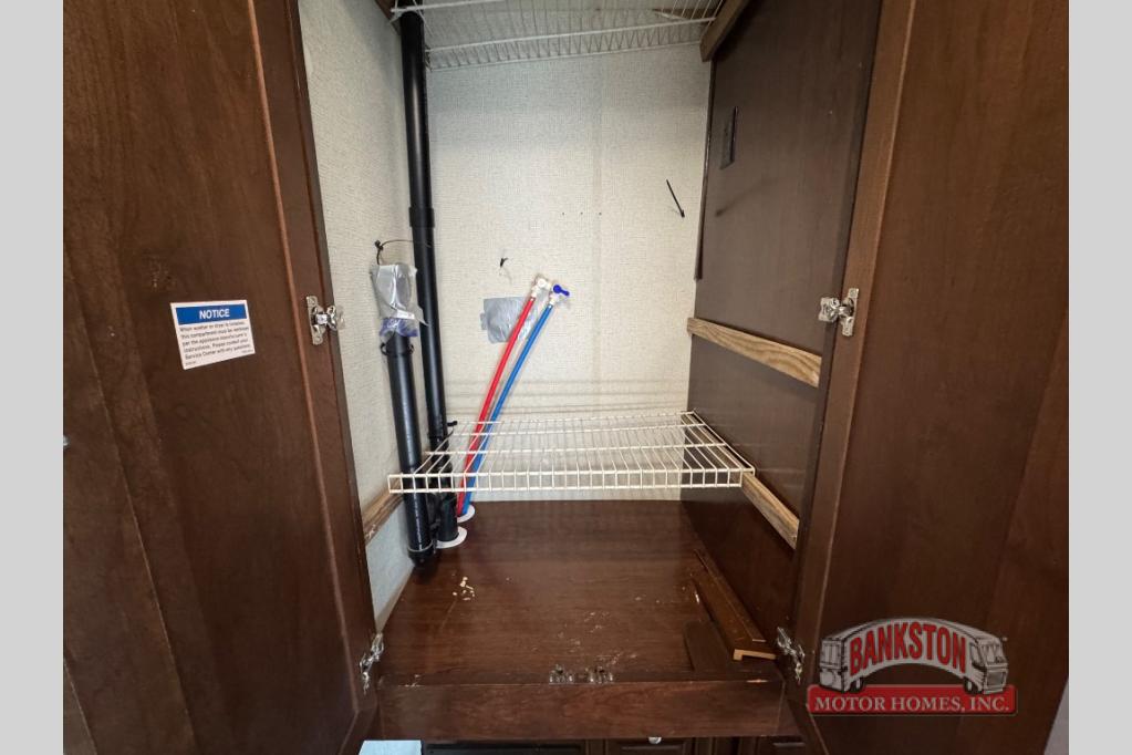 Step inside this Georgetown XL Class A gas motorhome to find comfort and luxury with two slides, sleeping space for five, plus a bath and a half with a dual-sink vanity in the master bathroom! In the evening you can plan to have a fire in the fireplace and watch TV on the 40" LED TV while relaxing on the four-person theater seating. The kitchen has all of the amenities that you would find at home with the stainless steel residential refrigerator, three-burner range, and microwave. You will also find that this model has been prepped for an optional washer and dryer so that you can keep up with your laundry while you are away from home.