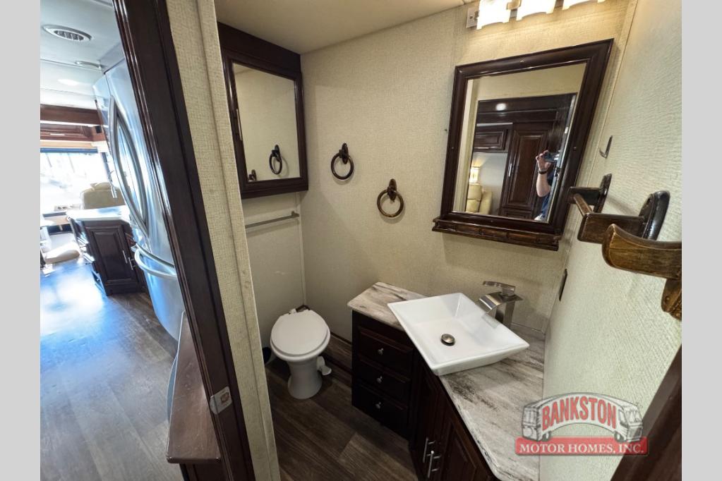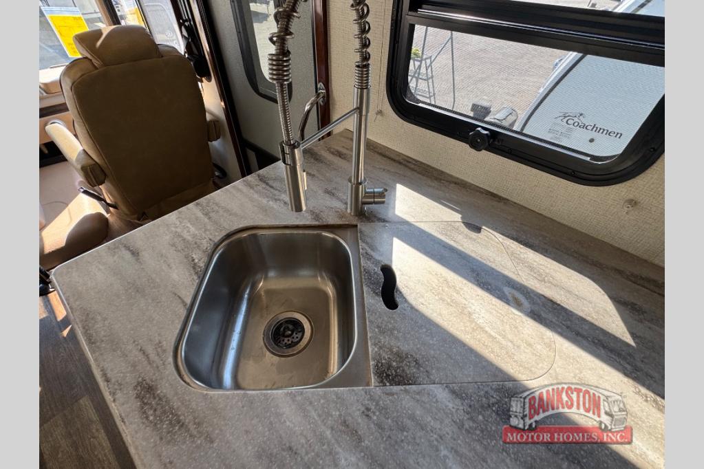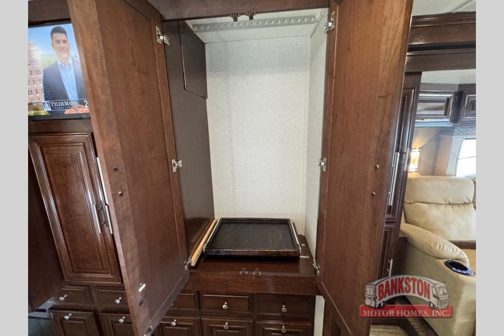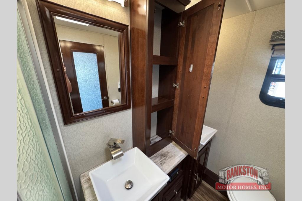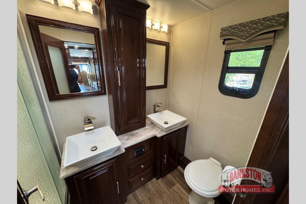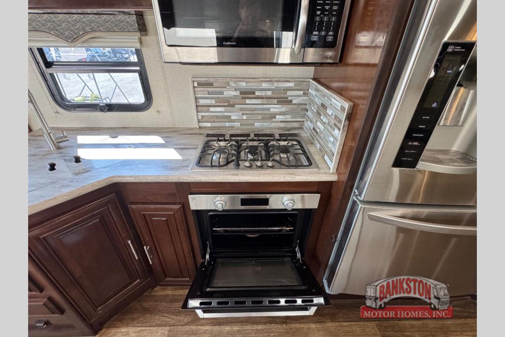 Step inside this Georgetown XL Class A gas motorhome to find comfort and luxury with two slides, sleeping space for five, plus a bath and a half with a dual-sink vanity in the master bathroom! In the evening you can plan to have a fire in the fireplace and watch TV on the 40" LED TV while relaxing on the four-person theater seating. The kitchen has all of the amenities that you would find at home with the stainless steel residential refrigerator, three-burner range, and microwave. You will also find that this model has been prepped for an optional washer and dryer so that you can keep up with your laundry while you are away from home.