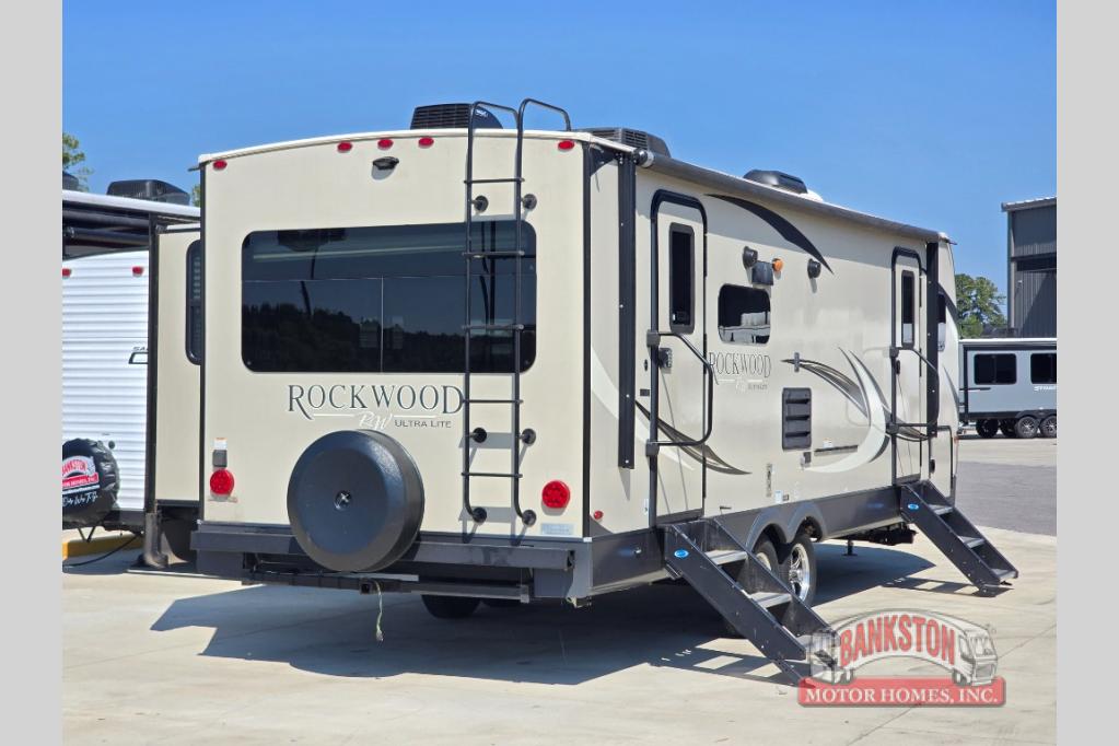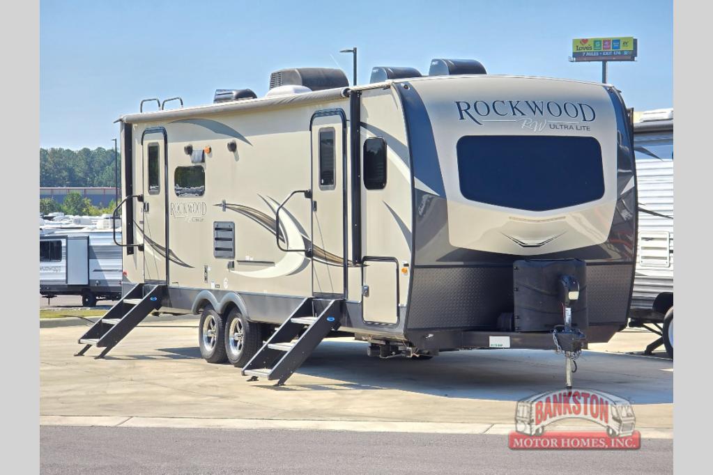 Lighten your load with any one of these Forest River Rockwood Ultra Lite travel trailers! All of these units have full-aluminum frames and laminated fiberglass sidewalls to make a sleek and sturdy unit that will last a lifetime. And with the Torsion axle and Rubber-Ryde suspension, you will enjoy a smooth ride each time you travel. To keep you cool on a warm day, you will enjoy a 13,500 BTU A/C unit, and to warm you up on a cooler day, there is a quick-recovery auto-ignition gas/electric water heater for a hot shower. Between the LED TV with a multi-directional antenna, the WiFi Ranger WiFi Booster Sky 4, and the multi-zone stereo with DVD/CD/AM/FM/MP3 player hook-up and Bluetooth control, you will find entertainment for everyone in your group.