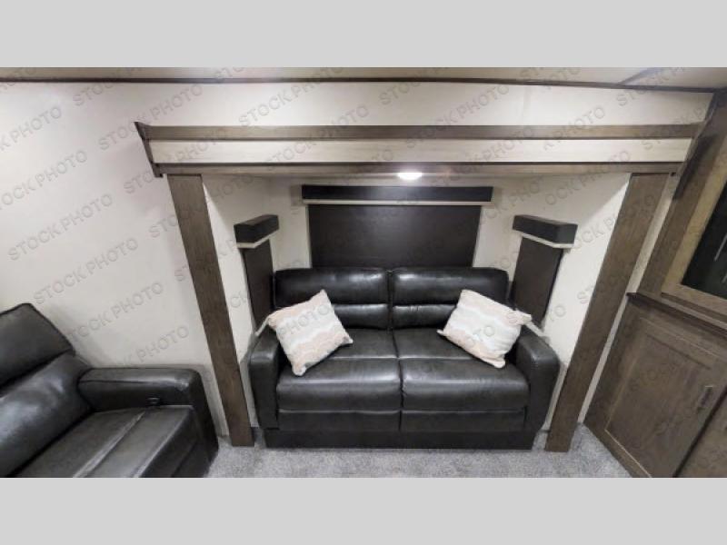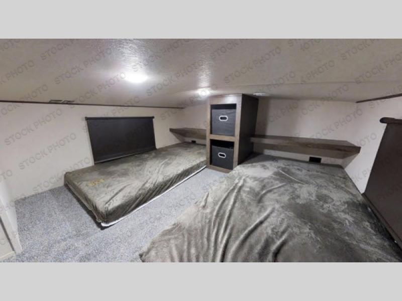 When you and your family are ready to answer the call of camping do so with this Salem Hemisphere GLX. This model is anything but ordinary from the five slide outs to the front separate living area there is plenty of space to spread out and enjoy your time away. Enter near the front into the kitchen, or near the rear across from the full bathroom and loft stairs. Your kids will surely love their own space in the loft with bunk mats and storage for their things. Meal prep is easy with this kitchen island and the appliances, plus you can eat your meals at the free standing dinette. In the evening, you will find yourself being drawn to the fireplace on those chilly evenings, and you can watch TV with plenty of seating choices. The living area even provides more sleeping space. This is the RV for fun and entertainment where ever you decide to setup!