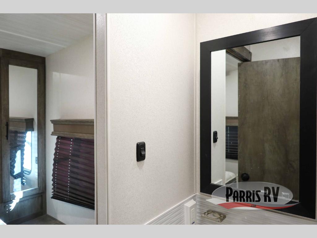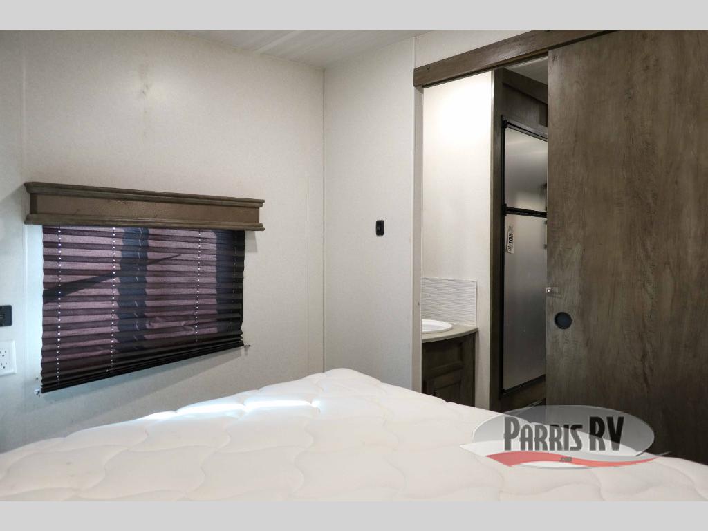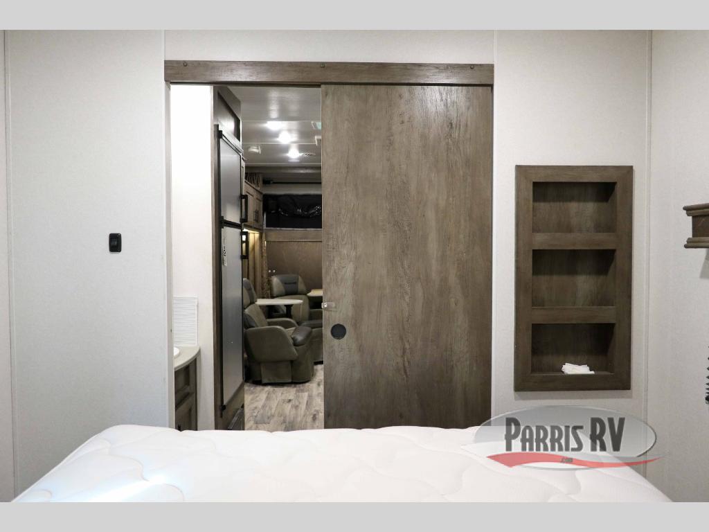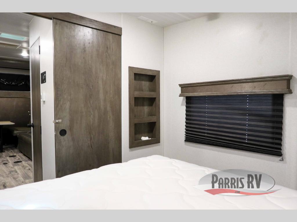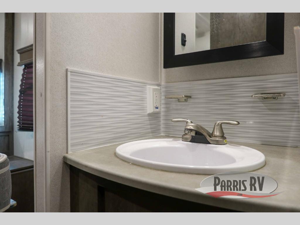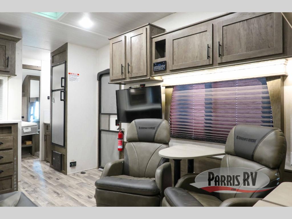 Step inside this Sandstorm toy hauler and experience a camping trip like none other! With 14' 4" of cargo space and 1,200 lb. tie downs mounted to steel, you can be sure your off-road toys will make it to your destination safely. There is plenty of room for everyone with the rear electric bed with a sofa below, two opposing sofas beside it, and a front private bedroom with a queen-size bed. Plus, you can switch out one of the sofas to add the optional chairs with table. The separated bath makes it easy for one person to clean the mud out of their ears while another washes up for dinner!
