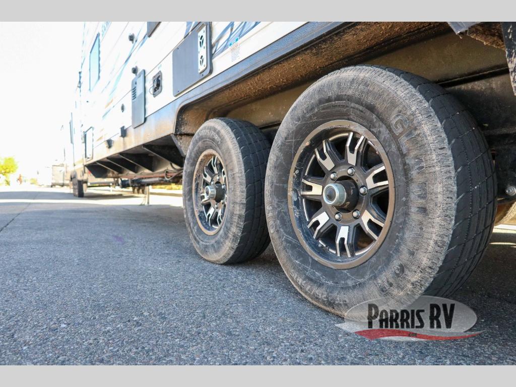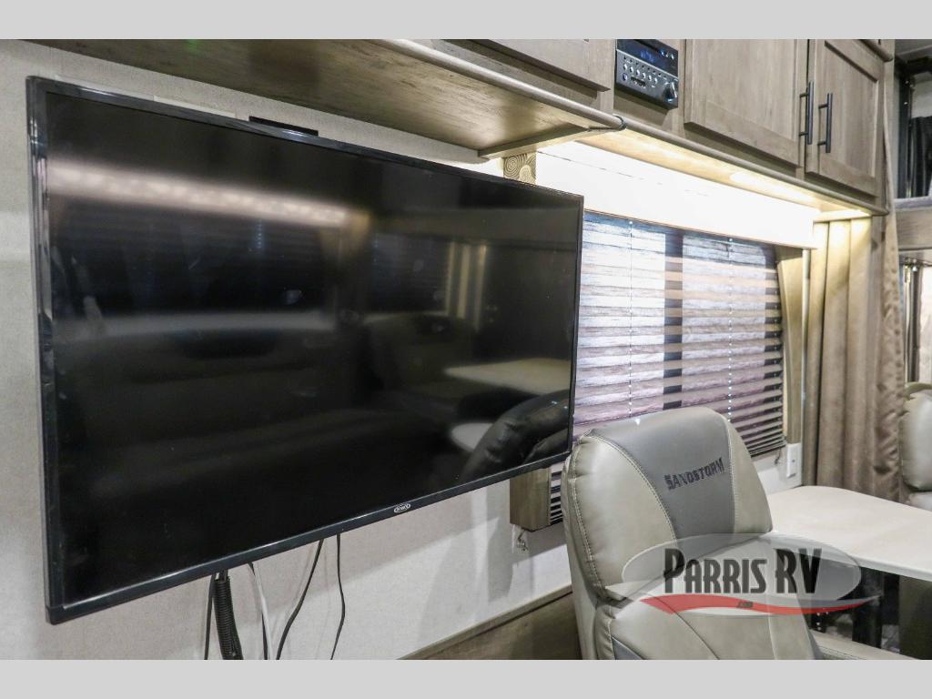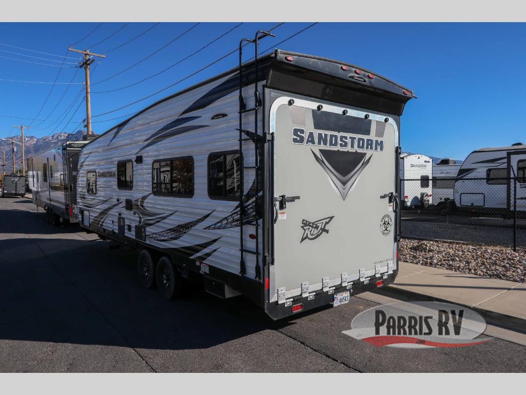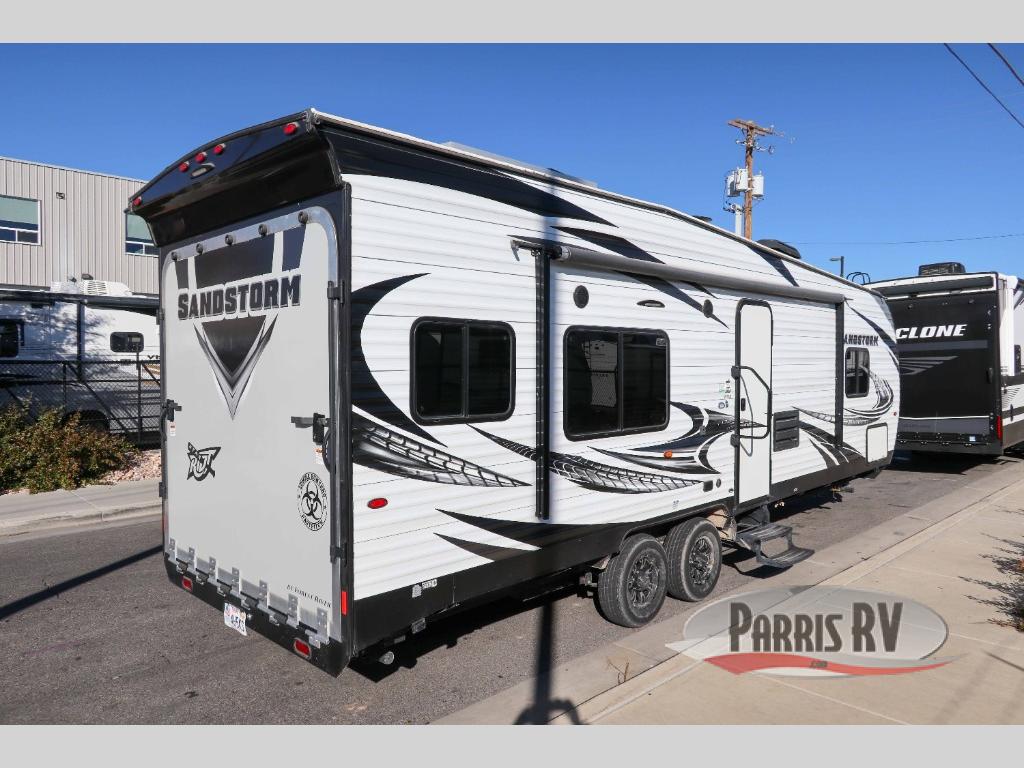 Every one of these Sandstorm travel trailer toy haulers feature a 102" wide body construction to really pack in all of the features! You can easily load up your favorite off-road toys thanks to the 3,000 lb. ramp door with patio cables and the beaver tail floor (per floorplan), plus the interior tie downs are mounted to steel so you can be sure your toys will arrive safely too. There are plenty of interior features to make this your home away from home, features like the residential queen mattress and the lighted LG solid surface kitchen countertops. You will also enjoy everything the exterior has to offer from the outside shower and the electric awning with LED lights to the black frame tinted safety glass windows. So, come choose your favorite Sandstorm toy hauler and start getting it muddy today!