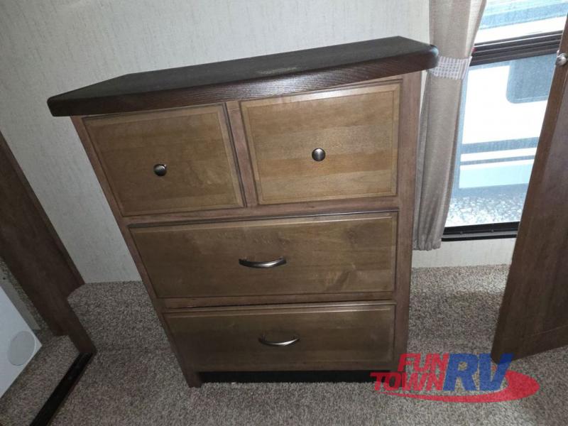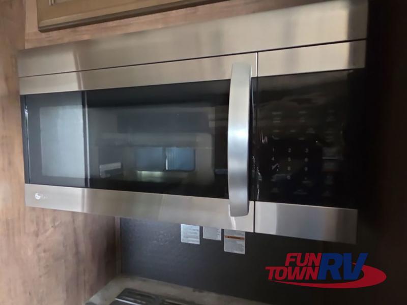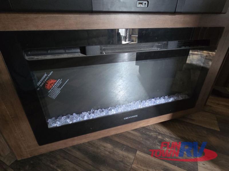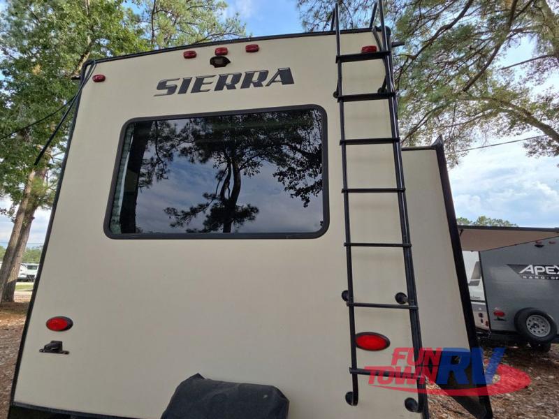 Plan to make plenty of memories with your family while you camp in this Sierra. From the exterior kitchen offering more space to prepare meals including having a microwave, and bumper-mount swivel gas grill, to being about to separate yourself from the combined full kitchen and second living area when relaxing, you will love all the features in this fifth wheel. You will also find two fireplaces, two sets of theater seats, and plenty of storage throughout. The master bedroom and full bathroom offer everything you will need to stay clean and refreshed for shopping in town, entertaining family, and hiking the trails.