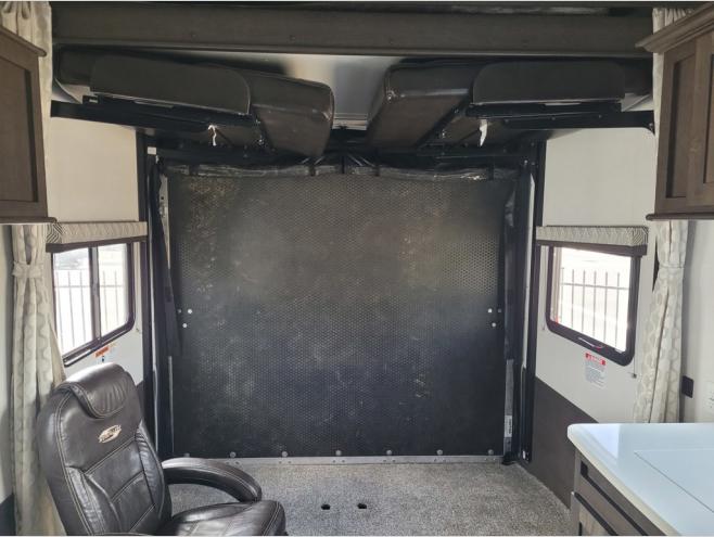 Are you looking for a toy hauler that can haul your dirt bikes but also give you comfortable features that you can enjoy while you're away from home? Look no further than this unit that features 13' 9" of cargo space and your own private bedroom with a queen bed and wardrobes for your clothes. Your riding buddies can crash on the electric bed or convert the electric pass through dinette for more sleeping space. You can prepare dinner just like you do at home on the three burner range or make something quick in the microwave oven so you can get back outside to ride some more!