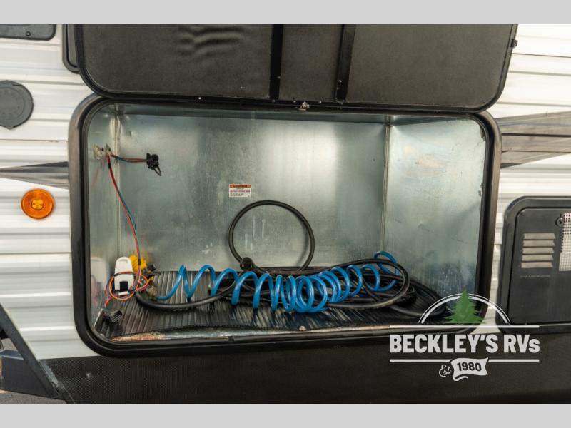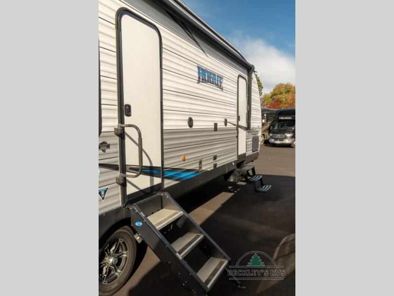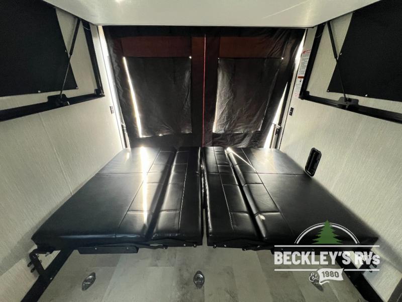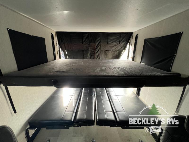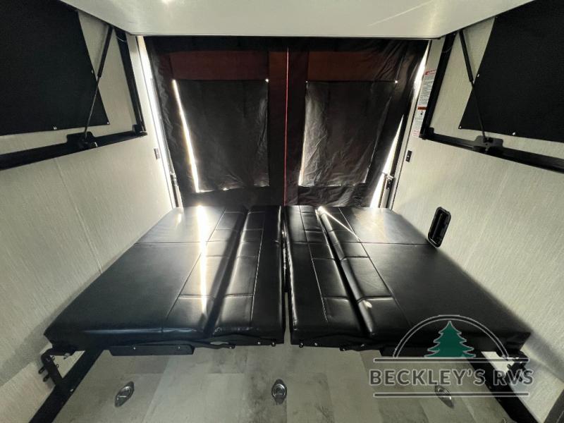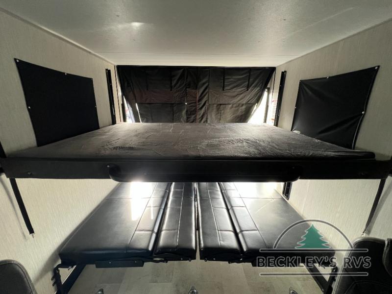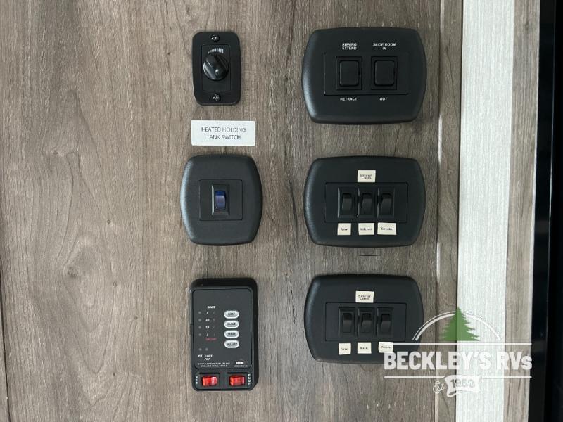 For any outdoor adventure, you will want a Vengeance Rogue toy hauler by Forest River! Each model features a ramp door patio system providing you an above-ground outdoor living space and a screen wall/tent wall to separate the inside from the outside without giving up any fresh air. With the enclosed underbelly, you can now camp in all types of weather, and after a day of playing outdoors, you will enjoy washing off the dirt at the outside shower. Inside, you will appreciate the multiple USB charging stations and the One Control system for lights, slides, monitor panel, and awning. Go Rogue today!