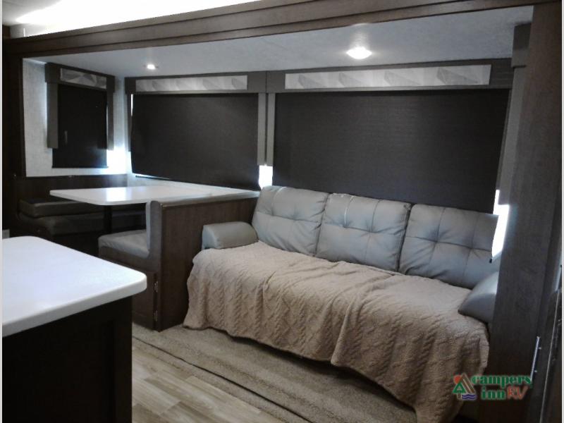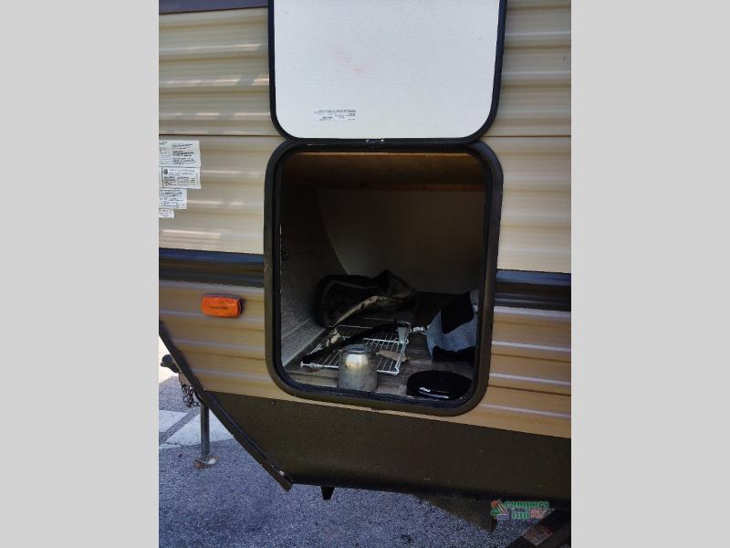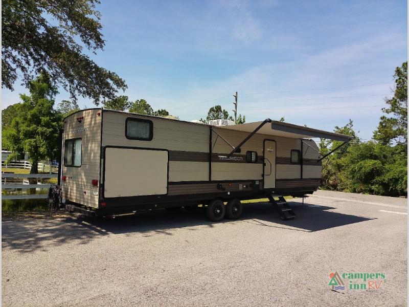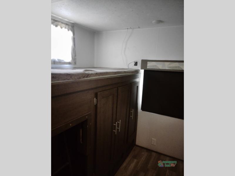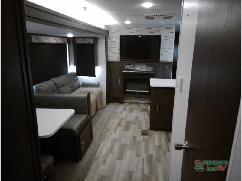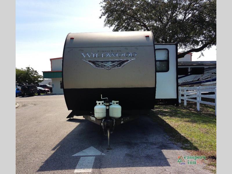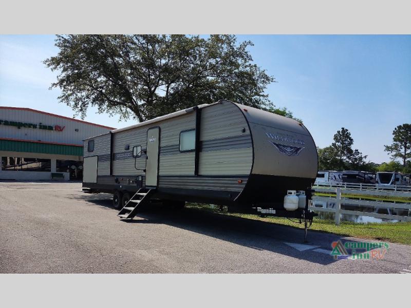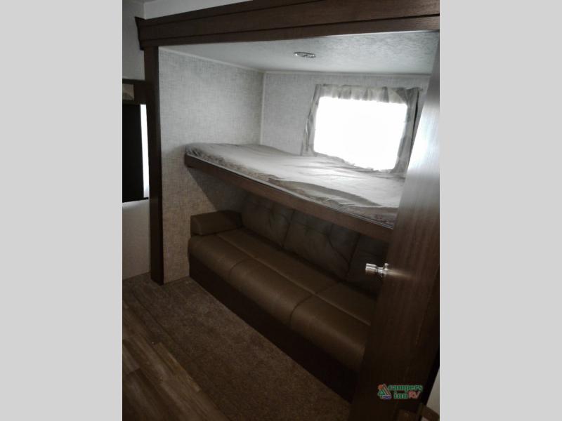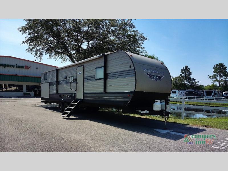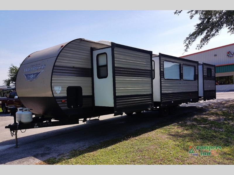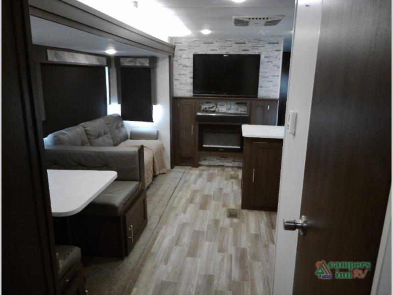 With each Midwest region Wildwood travel trailer by Forest River you will enjoy many interior comforts, like the Herringbone pattern luxury vinyl flooring, the Evergreen mattress, the tub surround, plus much more. There is a fully walkable one piece roof that will make cleaning off the top of your unit a snap, each model is also constructed with a powder coated I-beam frame and a tough coat paint exterior. The power awning with adjustable legs will provide an outdoor living space, and the exterior speakers with a blue LED light will keep the party going!