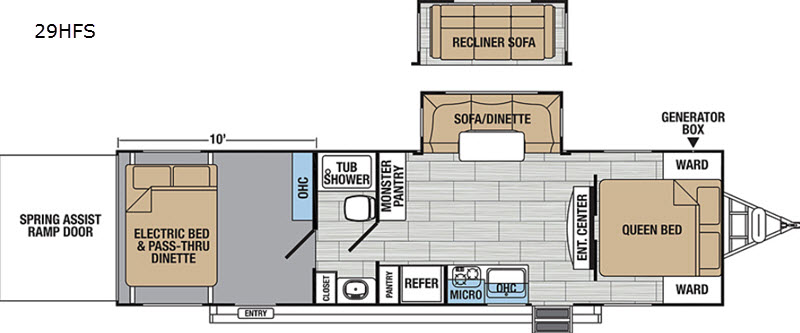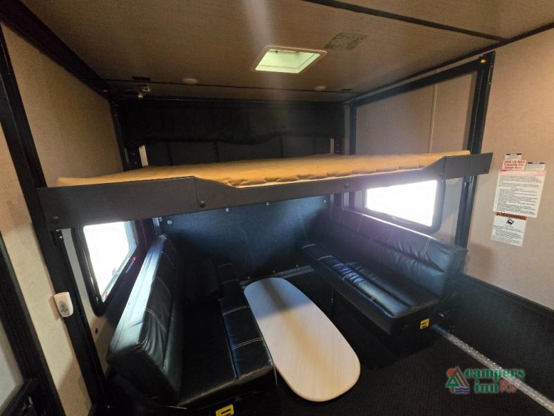 Separate 10' Garage – Dedicated space for ATVs, bikes, or gear. Converts into extra sleeping/living space with an electric bed and pass-through dinette.
