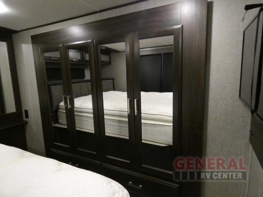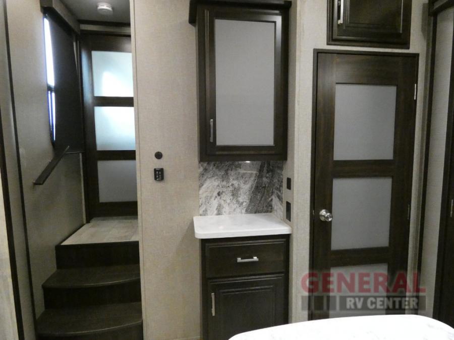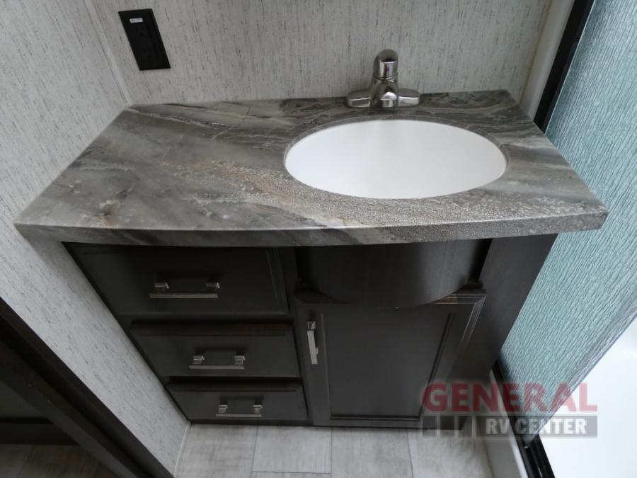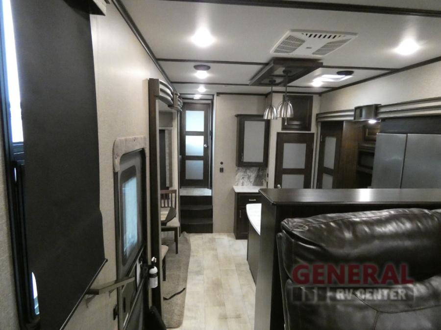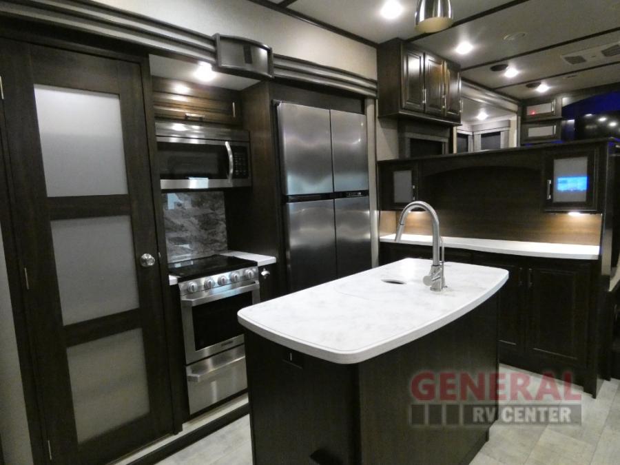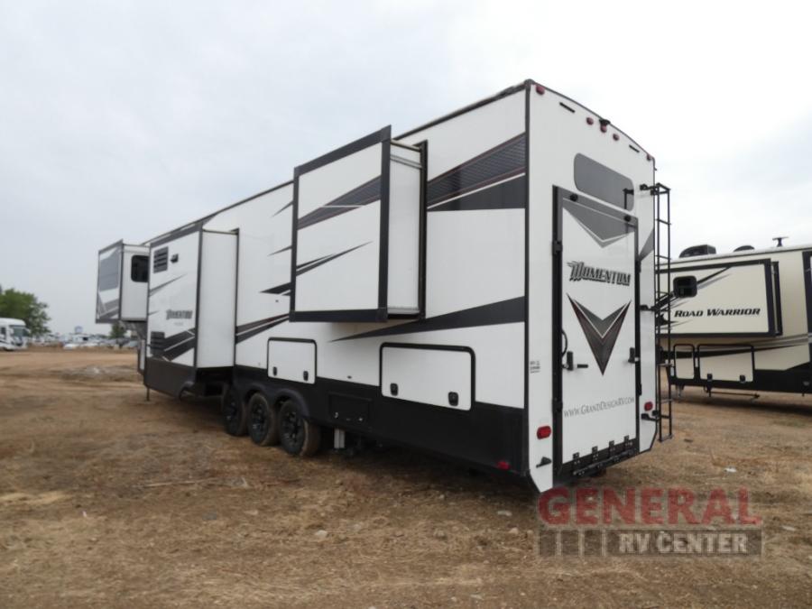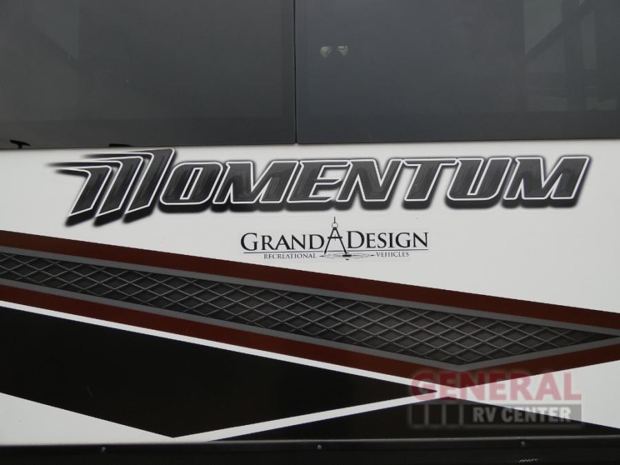 With any Momentum toy hauler fifth wheel you will enjoy extraordinary living with extreme playtime with the Weather-Tek insulation for four seasons of protection, and a fully enclosed fuel pump station to keep the fun going the whole time. The Tuff-Ply garage flooring is gas and oil resistant and includes 2,500 lb. rated flush-mount tie-downs to keep your toys secure while moving down the road. The interior includes a sofa with headrest and removable swivel table, a convection microwave, a central vacuum system with tools and a dust pan, and a satellite/solar roof access channel to mention a few highlights. Any Grand Design Momentum allows you to keep your active lifestyle no matter where you decide to stay!