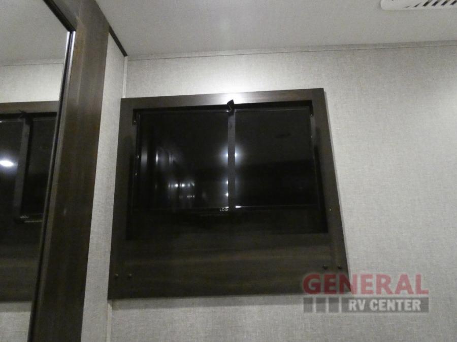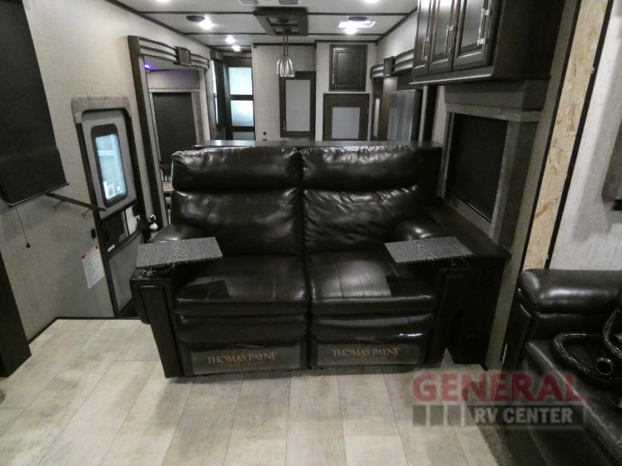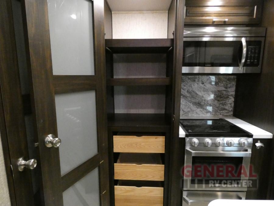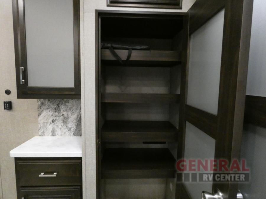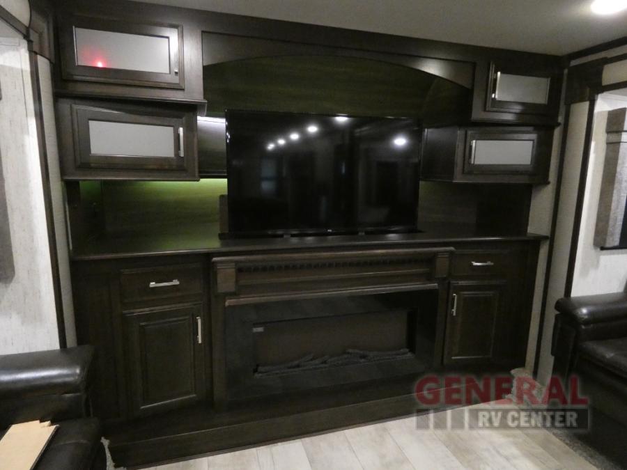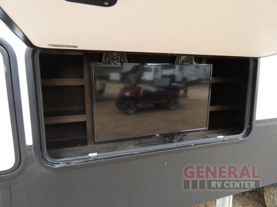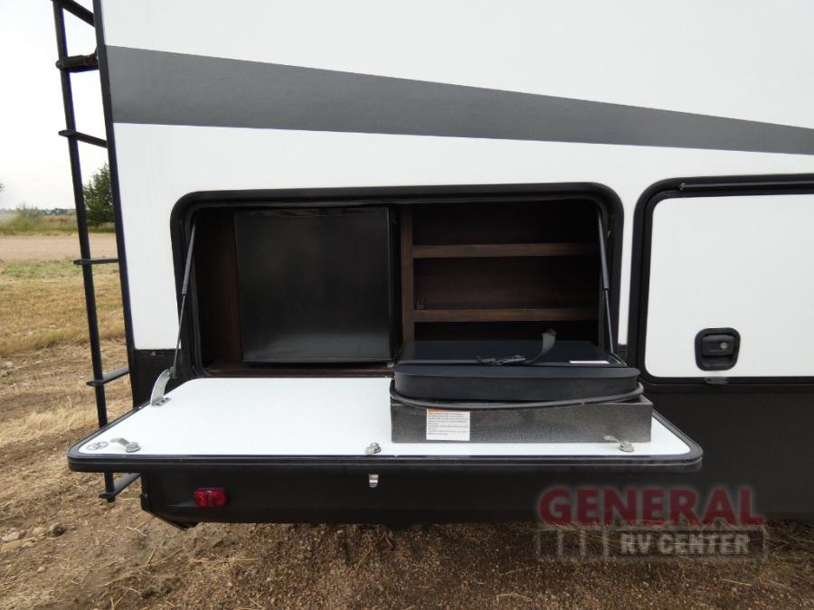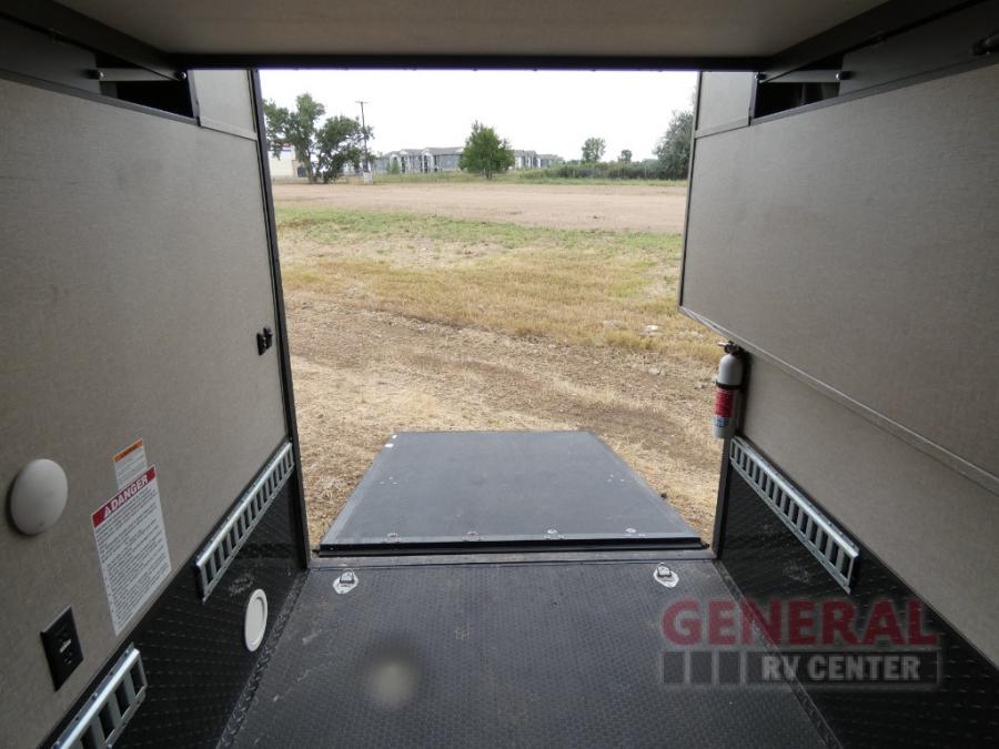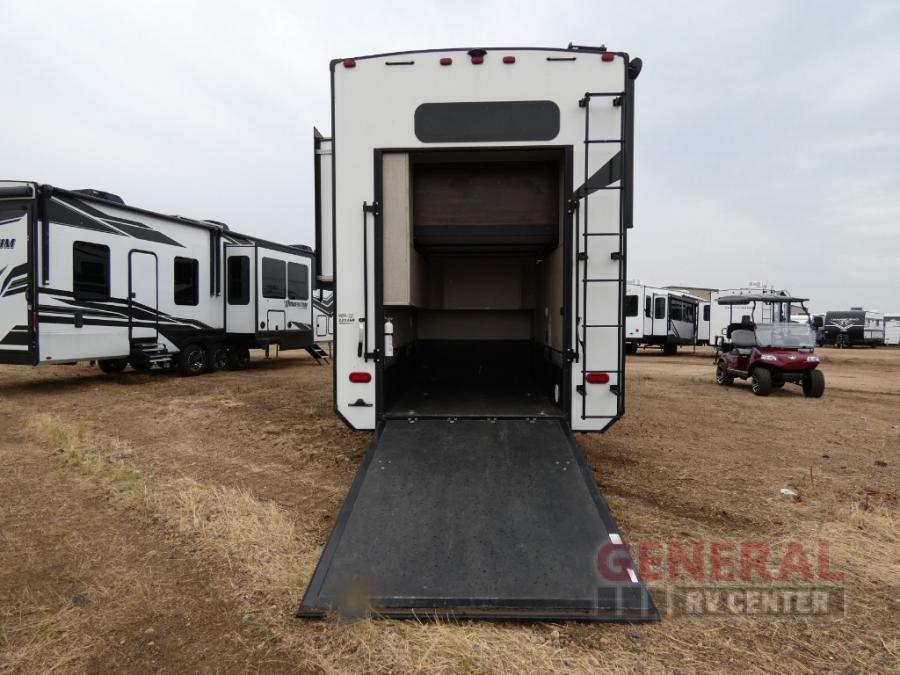 When you are ready for some off-road fun, hitch up this toy hauler fifth wheel to head to your favorite trails! This Momentum 376TH has a unique below floor garage with a bedroom above. After a busy day on the dunes, you can entertain guests in the front living area which includes a telescoping 49" LED TV with fireplace. You will find the separate kitchen area has all the amenities necessary to make and eat meals including a free standing dinette and large pantry. You can even add a washer and dryer in the second pantry if you want to keep your clothes clean the whole trip. You may choose to cook outdoors on the outside kitchen while watching the exterior LED TV. There is much more to see inside and outside this toy hauler!