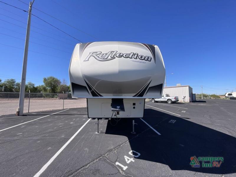 Each Reflection fifth wheel by Grand Design offers luxury along with easy towing to your favorite destinations with the aerodynamic front cap including Max Turn Radius. The Universal All-In-One docking station, LP Quick Connect, and One-Touch electric awning with LED lighting makes setting up and packing up easy for those weekenders or full-timers that like to move around. Inside, you will find the bedroom is complete with a residential queen mattress, a king size wardrobe, oversized underbed storage, and much more! The Arctic 4-Seasons Protection package allows you to camp anywhere and anytime of the year with its heated and enclosed underbelly, EZ winterization, dual attic vents, plus so much more. Come choose your favorite model today!