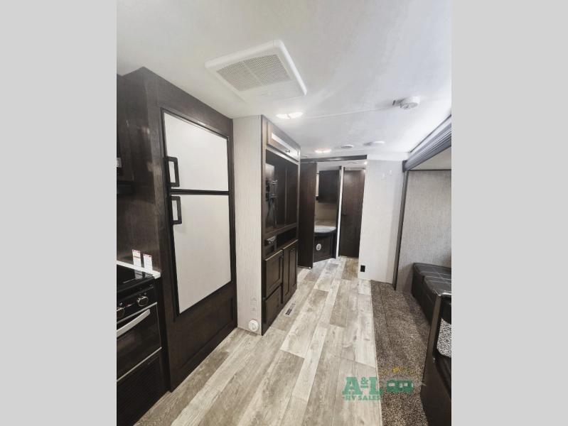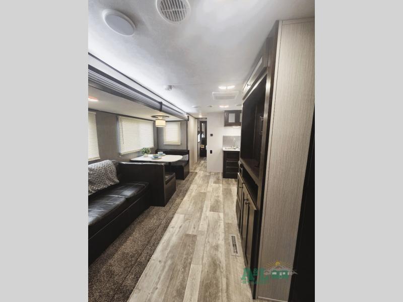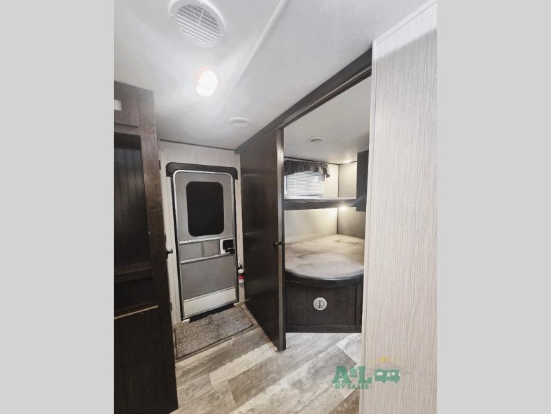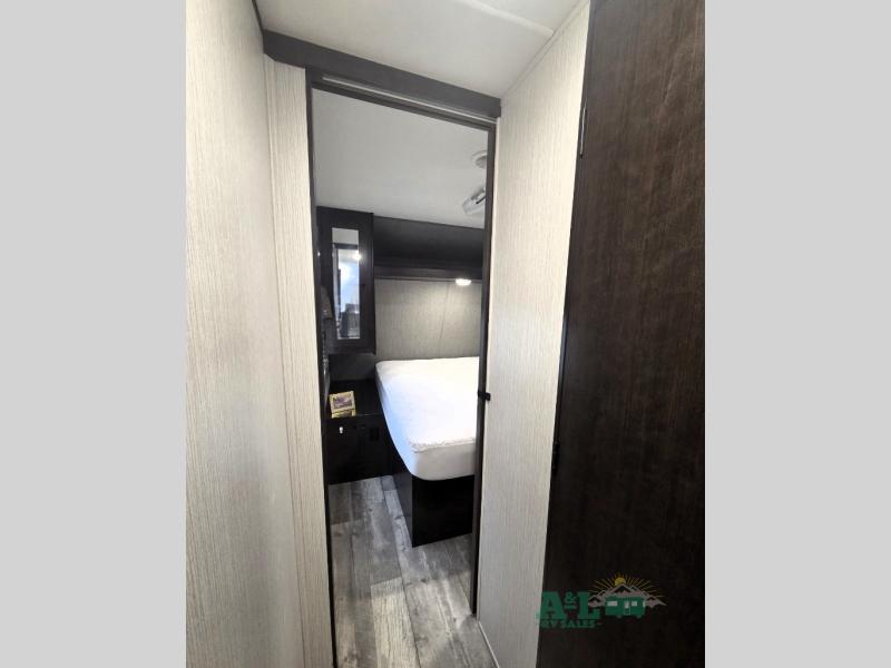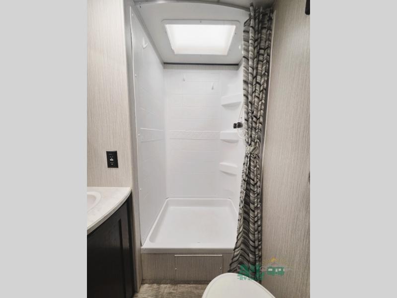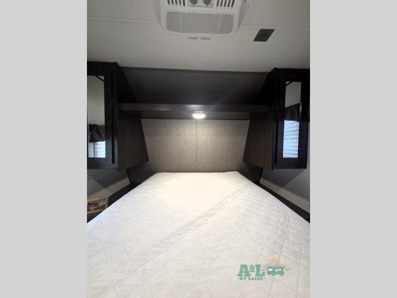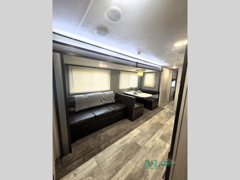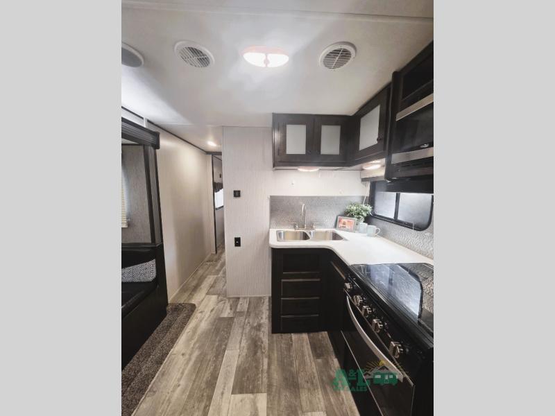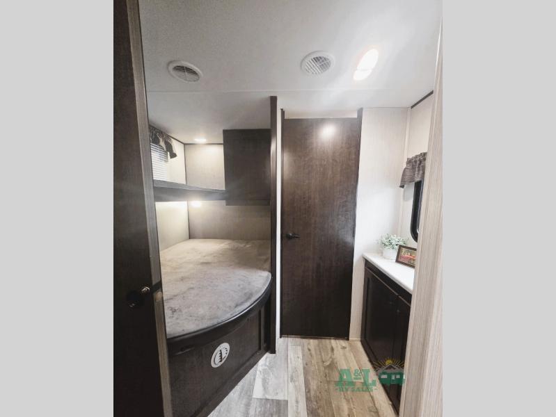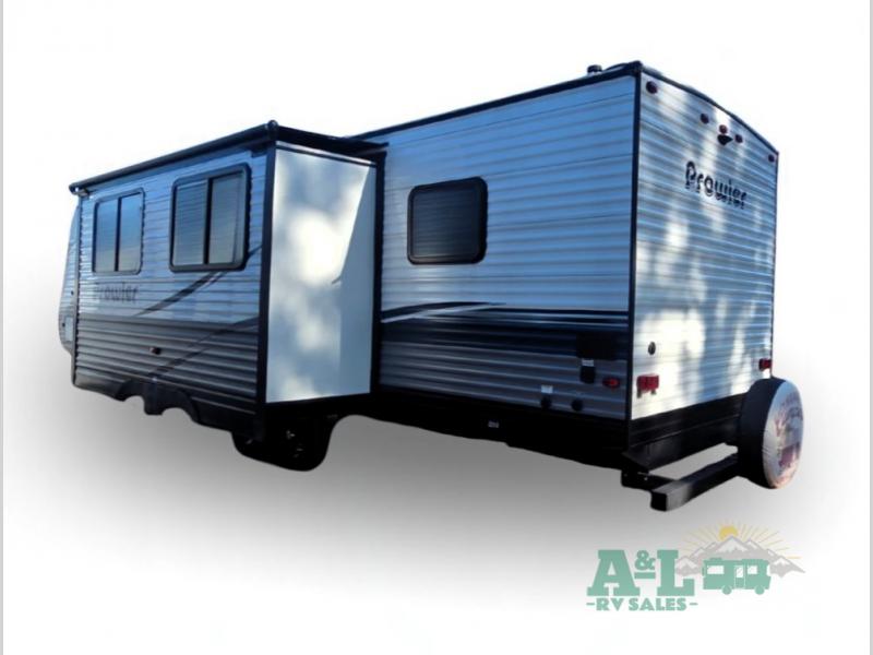 Load up the kids and invite the cousins for a fun weekend in this Prowler travel trailer that can sleep eight people each night. The bunkhouse suite includes a set of bunk beds and its own half bath for convenience. The chef of the family can prepare breakfast on the three-burner cooktop while the rest of your crew relaxes on the sofa or at the booth dinette. This model also includes an exterior camp kitchen so that you can enjoy dinner outside under the power awning with LED lights. When it's finally time to call it a night, freshen up in the full bath and then head to the front private bedroom to get a good night's rest.