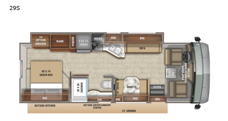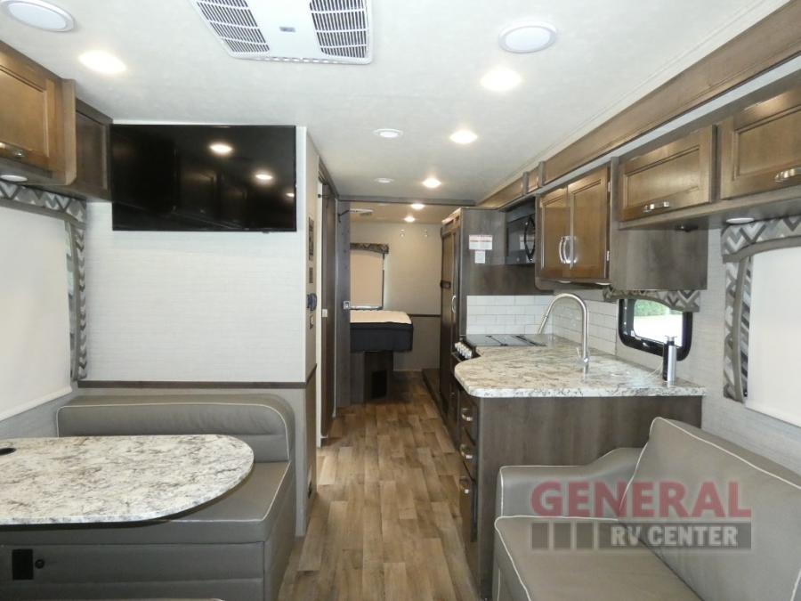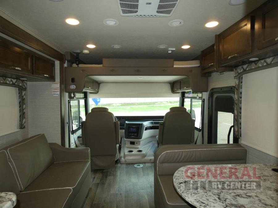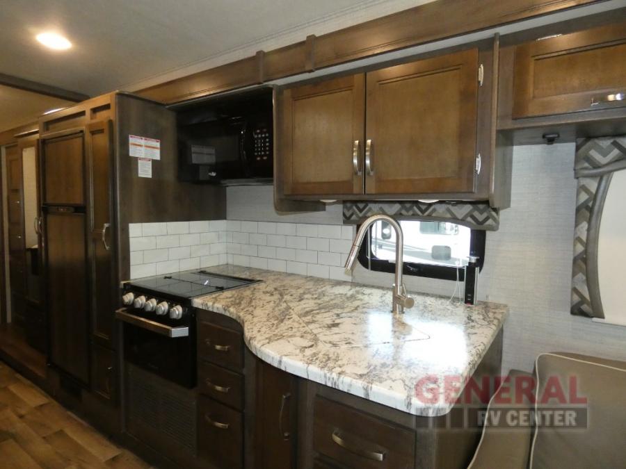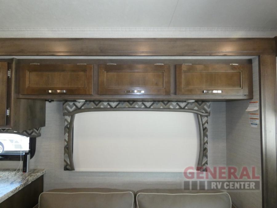 The Alante Class A gas motorhome comes equipped with a JRide package that includes a computer-balanced driveshaft, jounce bumpers, front and rear stabilizer bars, and SACHS shocks. You will appreciate having the industry's largest travel-view window on the entrance door providing amazing views and extra natural light. Inside, you will find high-intensity recessed LED ceiling lights, ball-bearing drawer guides, and hardwood cabinetry. Plus, the Soundstream Infotainment dash radio with GPS and CD/DVD player will enhance all of your upcoming road trips. Your home on the road is waiting for you, so choose your favorite Alante and get to it!