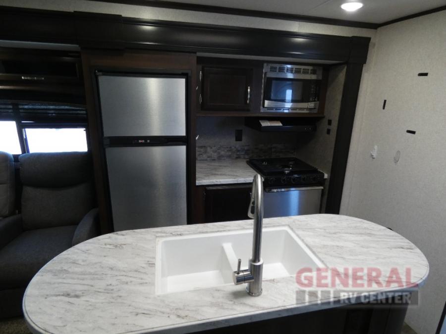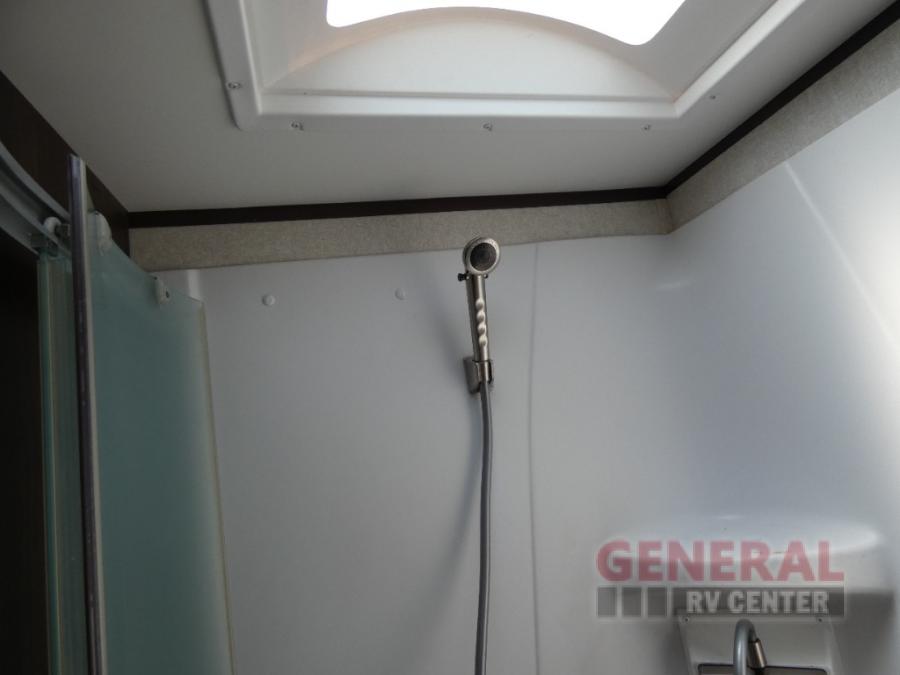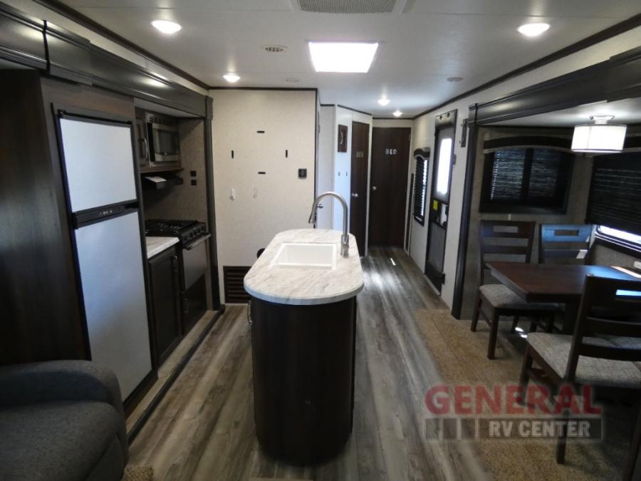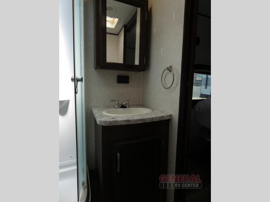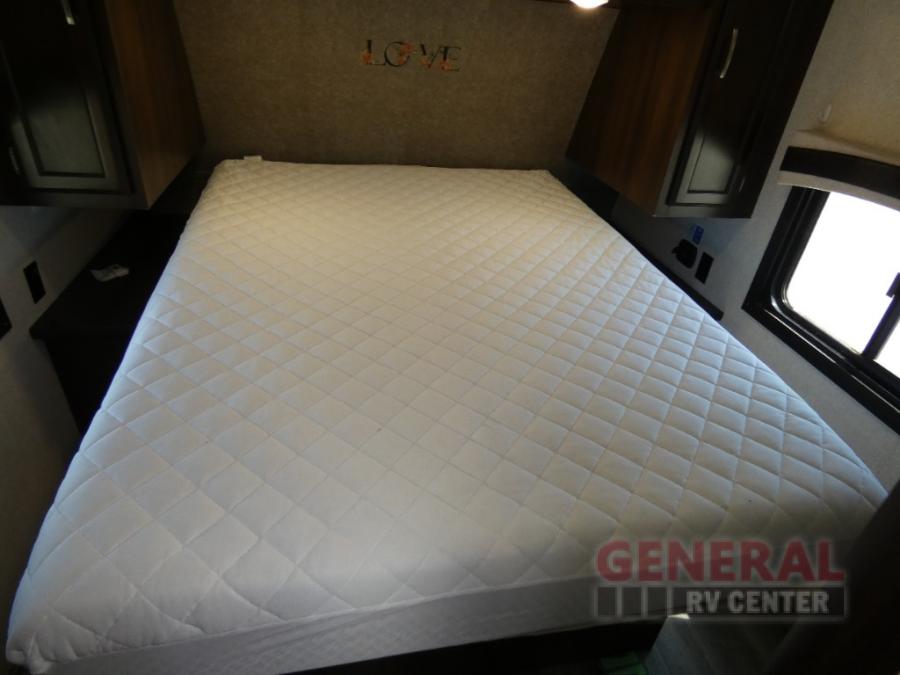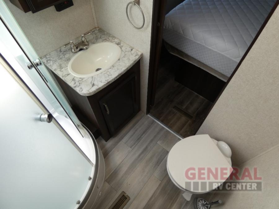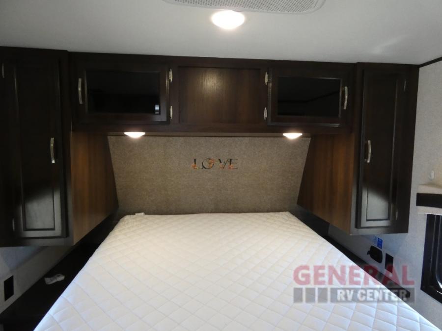 This fabulous Jay Flight travel trailer comes with large opposing slides to create extra interior living space! Because of that added space, you'll find a kitchen island which will make it easy to prep dinner or wash dishes afterwards. Another fabulous addition is the master suite up front that has its own private entrance into the bathroom, and since there is a skylight above the radius shower, you'll have more head space while you get clean.