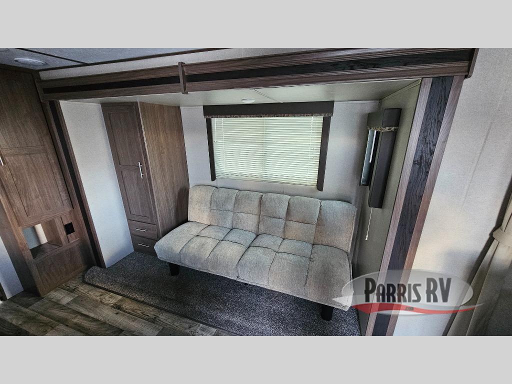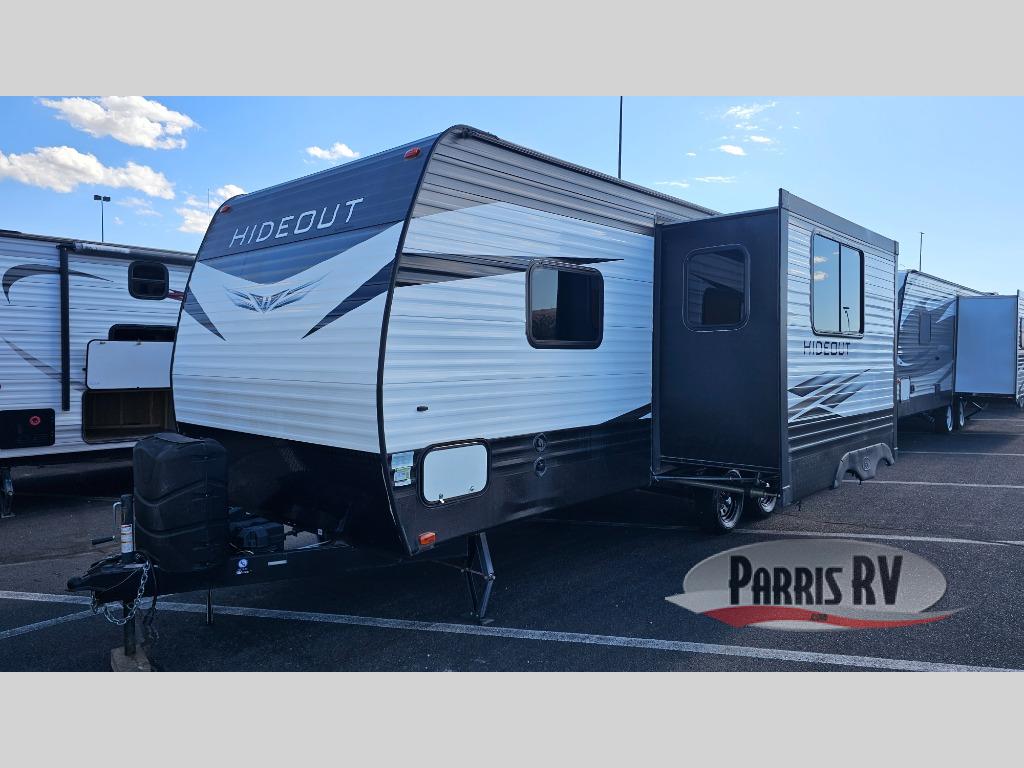 For any trip, whether near or far, you will want a Hideout fifth wheel, travel trailer, or toy hauler by Keystone RV. These models are lightweight which makes them easy to hook up and tow. Just load up your belongings and head out for a weekend away in your own Hideout retreat. A few key features inside of each model include: pleated shades in the living area, a high-rise faucet in the kitchen, and full-strutted storage under the master bed, and the exterior is just as indulgent with its powder-coated I-beam frame, exterior speakers, black radius window frames, hurricane straps reinforced structure, and the lighted adjustable power awning. Don't wait any longer to enjoy your own private hideout with the Keystone Hideout!