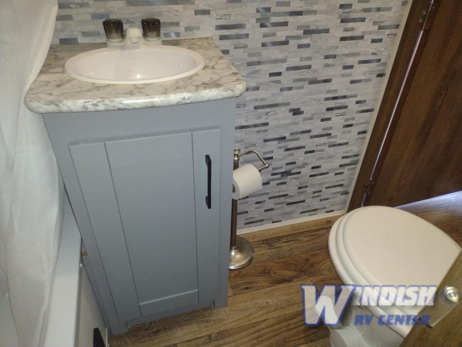 Imagine starting your next camping trip off right with this Vapor Lite travel trailer in tow. You will love that there is a unique layout for the private bedroom with a slide out adjustable bed, a dresser and a closet for plenty of storage for any weather. The dual entry bathroom is conveniently located next to the main entry door so that you can quickly get inside to use the restroom and head back out for more fun. The kitchen offers everything you will need to feed the gang including a 32" LED TV above the 8 cu. ft. refrigerator, and the U-shaped dinette slide offers a place to dine, play games, and relax. The garage provides seating and sleeping space with the dual opposing sofas, plus storage for your toys. Get ready for fun!