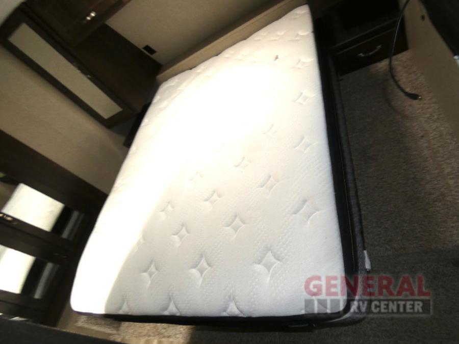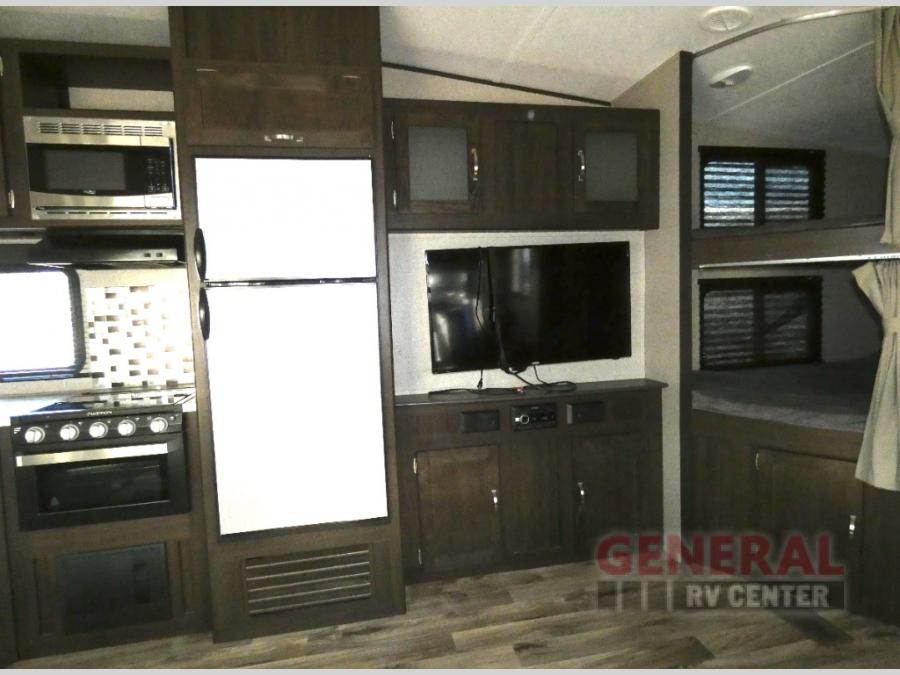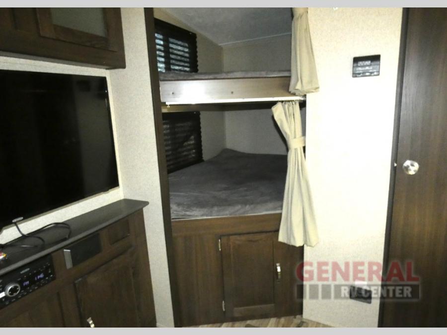 You will just love this Keystone Springdale fifth wheel! With the two slides, there is plenty of storage space to keep your travel items and enough room to freely move around the unit! You will love cooking in the kitchen, relaxing on the sofa in front of the entertainment center, or eating a meal at the booth dinette which can also be transformed into an extra sleeping space. The double-size bunks are sure to be a crowd pleaser with your kiddos, and they will also love having their own half bath located right next to the bunks. You are sure to love having your own front private master suite that has a queen bed with closets and nightstands on either side, as well as a wardrobe slide to keep your clothes neat and tidy. Plus, you have your own entrance into the dual-entry bath. Whatever you choose to do, your trip is sure to be relaxing, fun, and amazing!