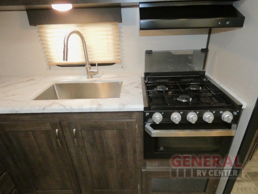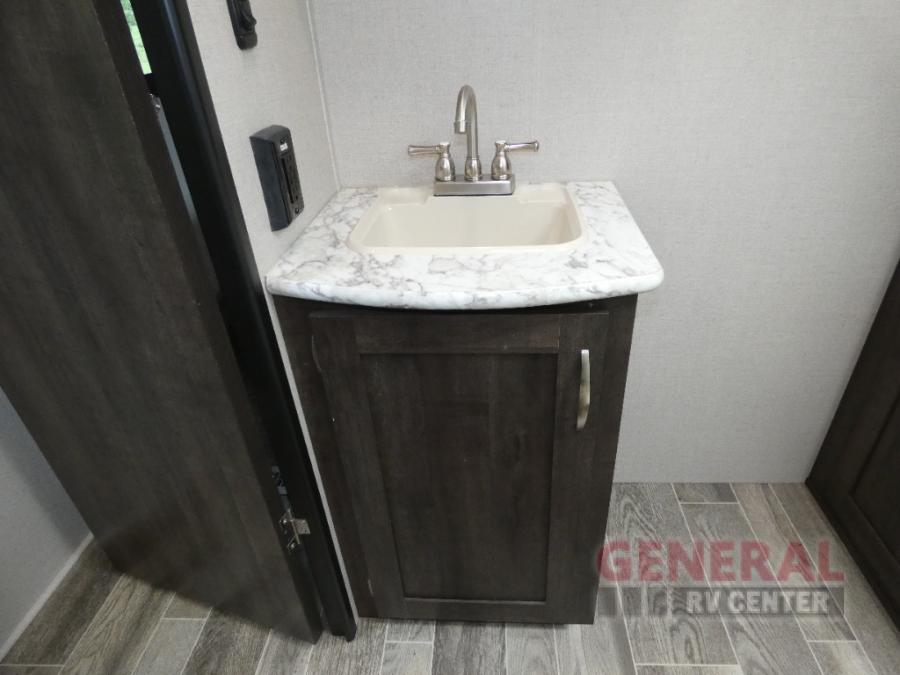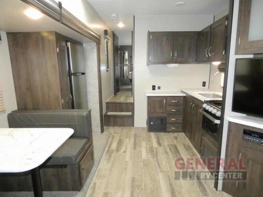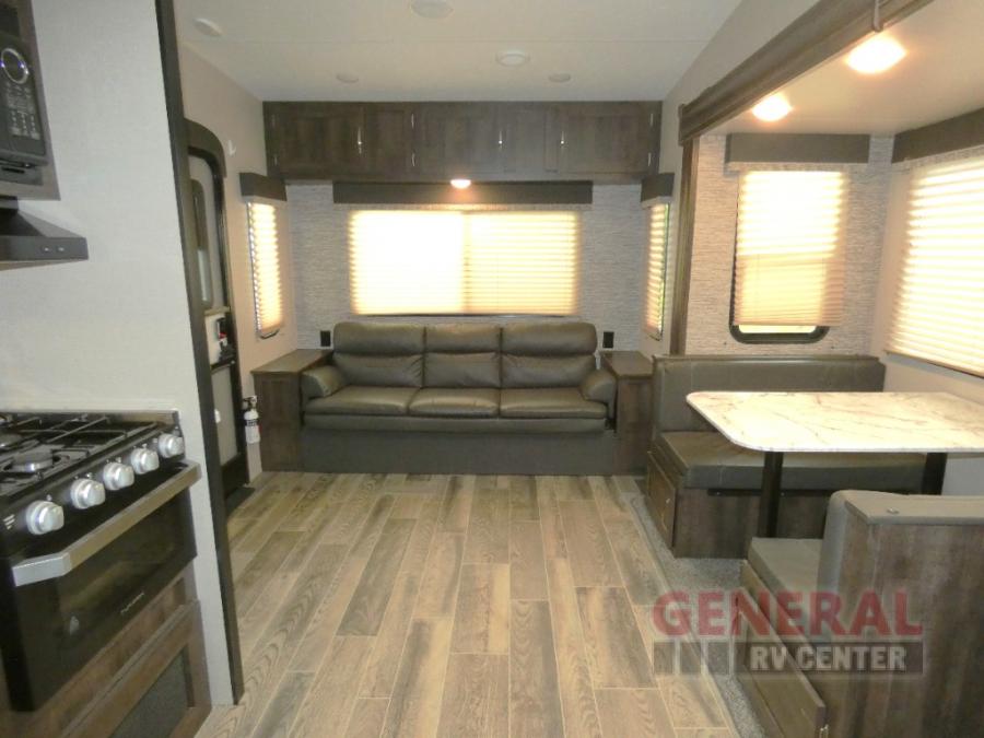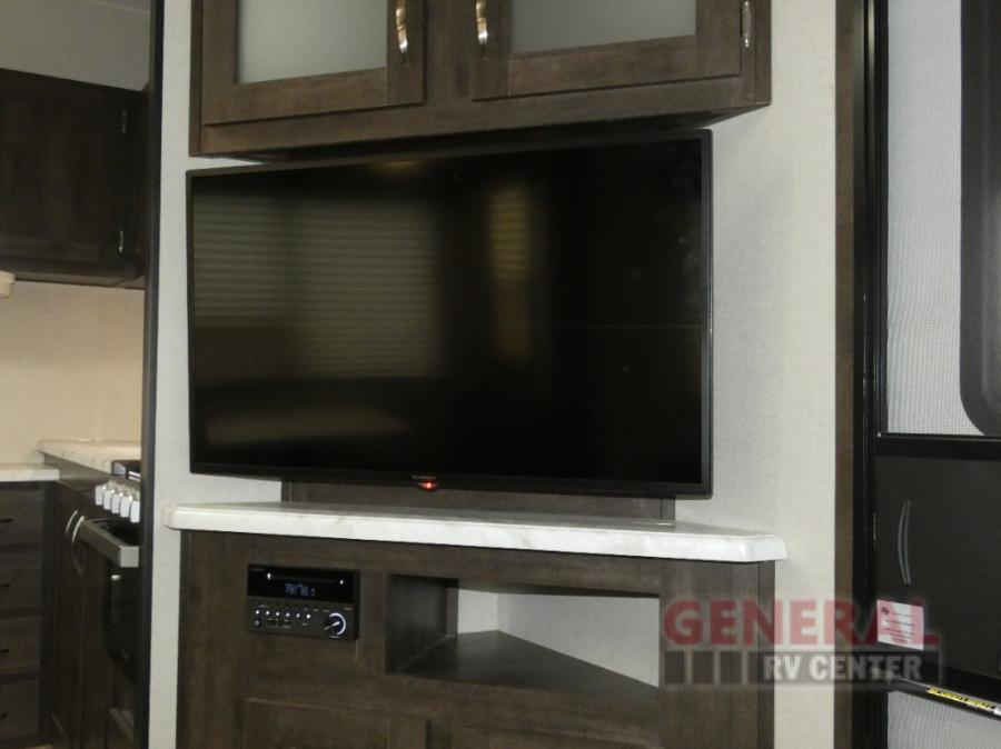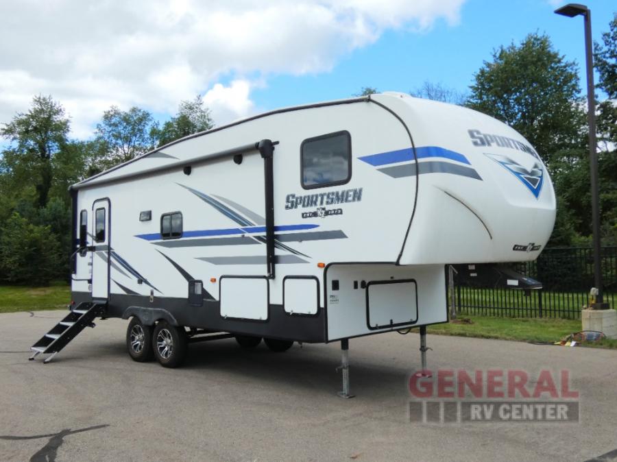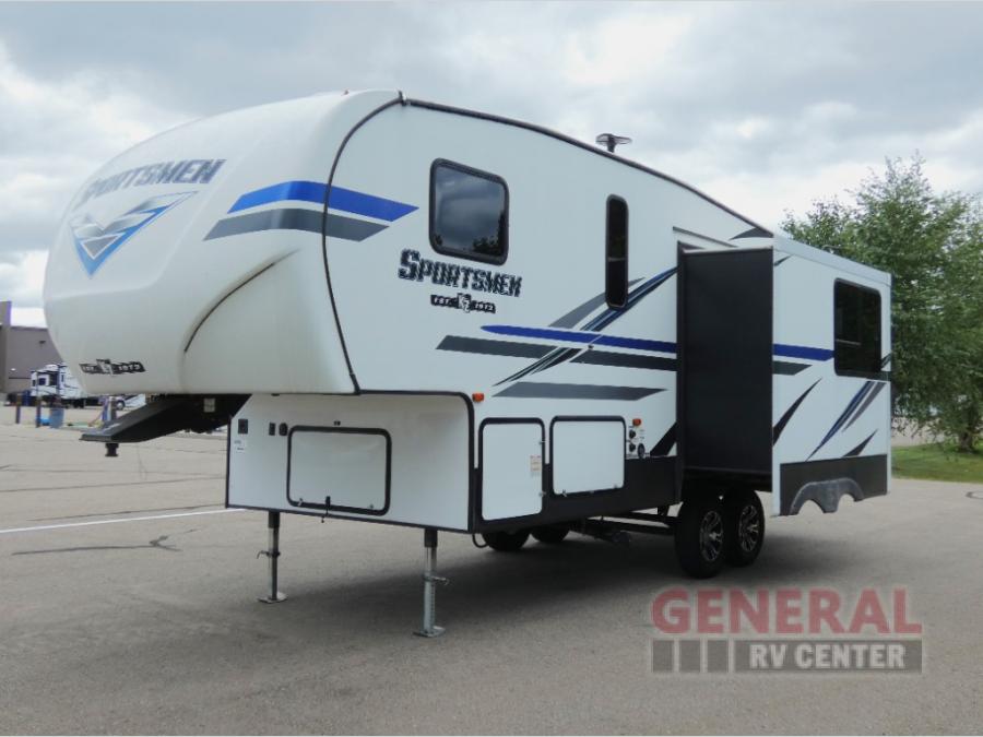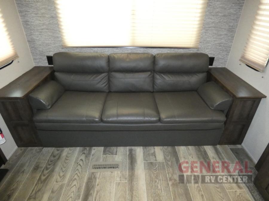 Take your family away in a reliable unit like this Sportsmen fifth wheel! As you spend the night sleeping on the queen-size bed in the front master suite, you'll look forward to waking up in the morning and having a delicious breakfast that has been easily prepared on the three-burner cooktop and in the oven or stainless steel microwave. And if you would rather spend your time adventuring instead of making meals, you can simply grab some cereal from the pantry and then grab some milk from the 8 cubic foot refrigerator.