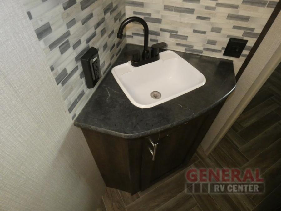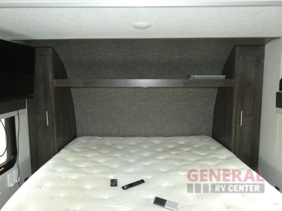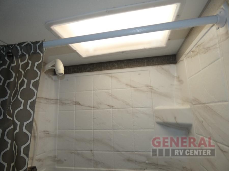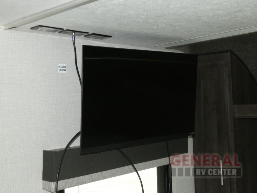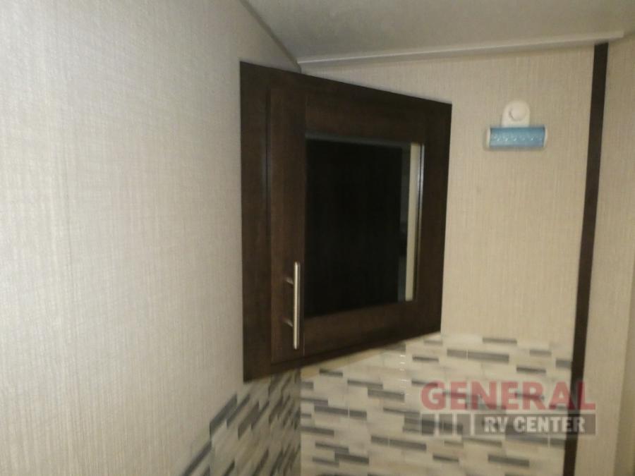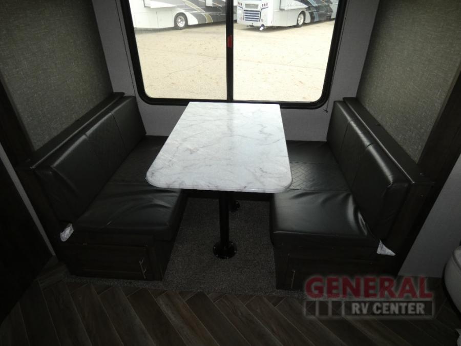 Camping has never been more fun than in this travel trailer that features double-sized bunks for the kids and a front king bed for you and your spouse. The rear corner bath is right next to the bunks for convenience at night and the single slide out provides a little more floor space for the dog to stretch out. The chef of the family will love being able to cook inside on the three burner cooktop or outdoors on the outside kitchen that includes a grill and a refrigerator. Enjoy your meals together under the 18' electric awning with LED lights and after dinner, the kids can play a game at the booth dinette.