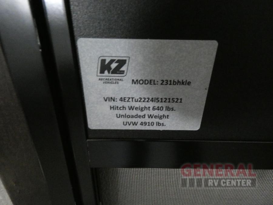 KZ Sportsmen LE travel trailer 231BHKLE highlights: